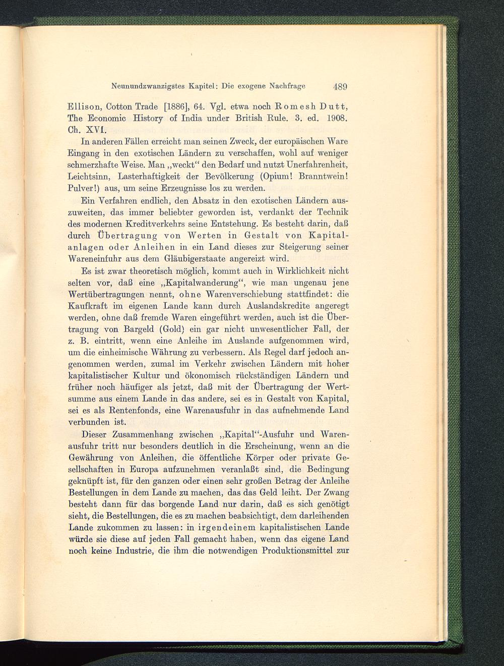Ein Verfahren endlich, den Absatz in den exotischen Ländern aus-zuweiten, das immer beliebter geworden ist, verdankt der Technikdes modernen Kreditverkehrs seine Entstehung. Es besteht darin, daßdurch Übertragung von Werten in Gestalt von Kapital-anlagen oder Anleihen in ein Land dieses zur Steigerung seinerWareneinfuhr aus dem Gläubigerstaate angereizt wird.