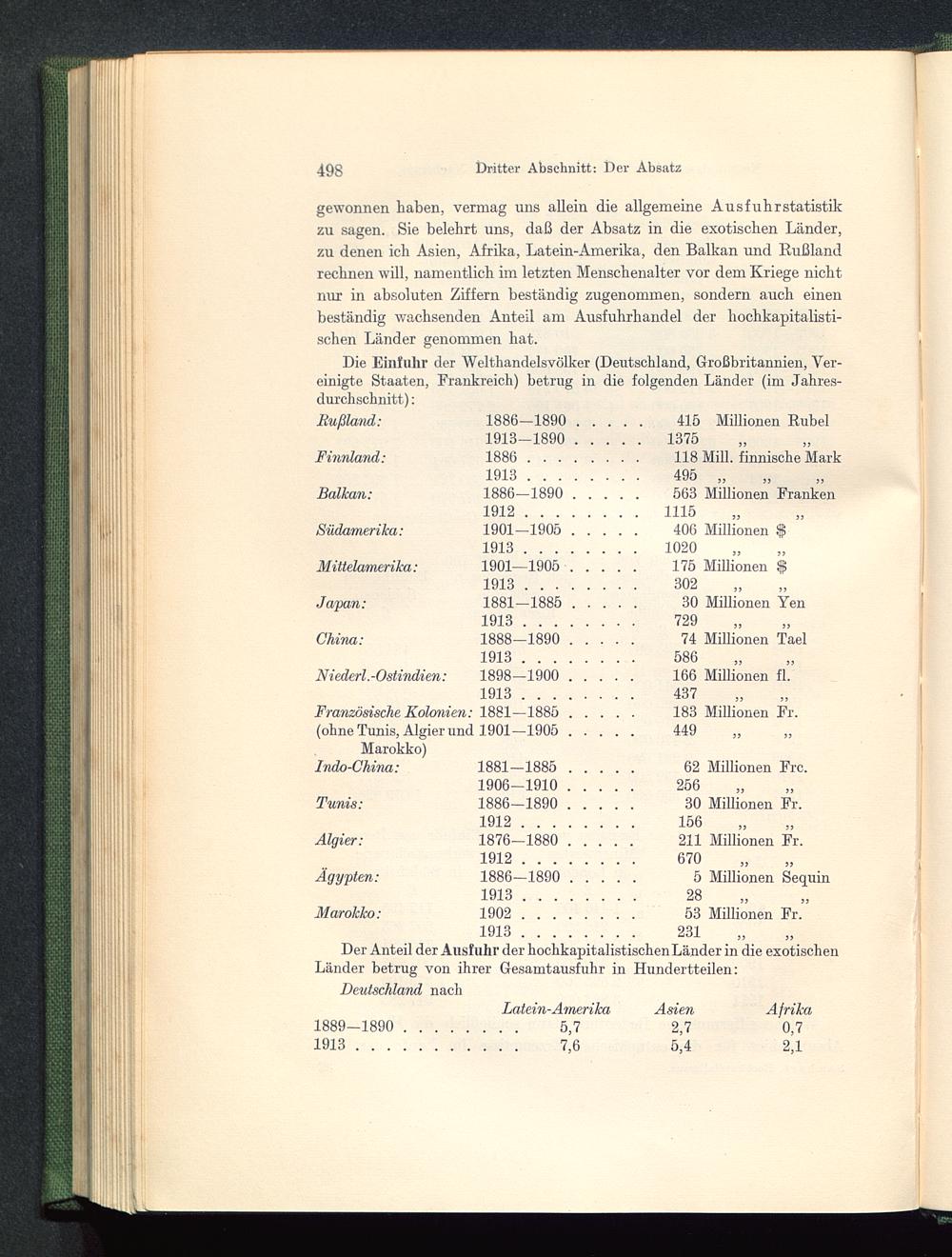 Die Einfuhr der Welthandelsvölker (Deutschland, Großbritannien, Ver-einigte Staaten, Frankreich) betrug in die folgenden Länder (im Jahres-durchschnitt) :