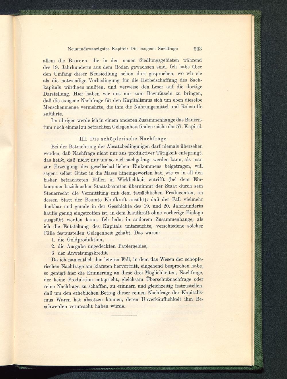 allem die Bauern, die in den neuen Siedlungsgebieten währenddes 19. Jahrhunderts aus dem Boden gewachsen sind. Ich habe überden Umfang dieser Neusiedlung schon dort gesprochen, wo wir sieals die notwendige Vorbedingung für die Herbeischaffung des Sach-kapitals würdigen mußten, und verweise den Leser auf die dortigeDarstellung. Hier haben wir uns nur zum Bewußtsein zu bringen,daß die exogene Nachfrage für den Kapitalismus sich um eben dieselbeMenschenmenge vermehrte, die ihm die Nahrungsmittel und Rohstoffezuführte.