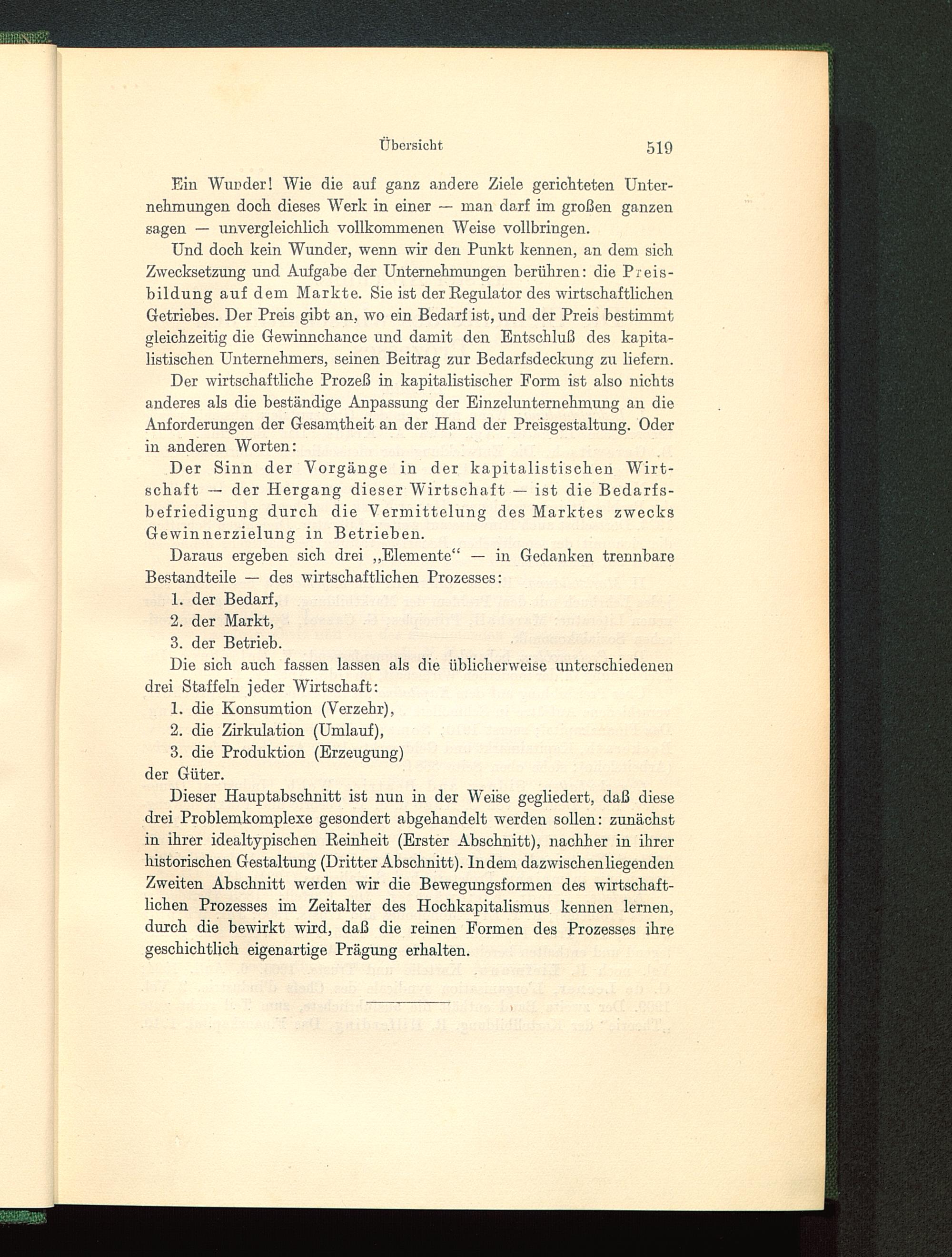 Der Sinn der Vorgänge in der kapitalistischen Wirt-schaft — der Hergang dieser Wirtschaft — ist die Bedarfs-befriedigung durch die Vermittelung des Marktes zwecksGewinnerzielung in Betrieben.