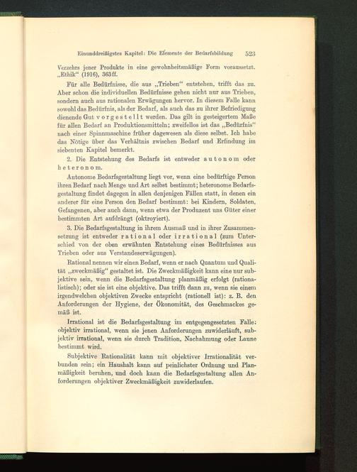 3. Die Bedarfsgestaltung in ihrem Ausmaß und in ihrer Zusammen-setzung ist entweder rational oder irrational (zum Unter-schied von der oben erwähnten Entstehung eines Bedürfnisses ausTrieben oder aus Verstandeserwägungen).