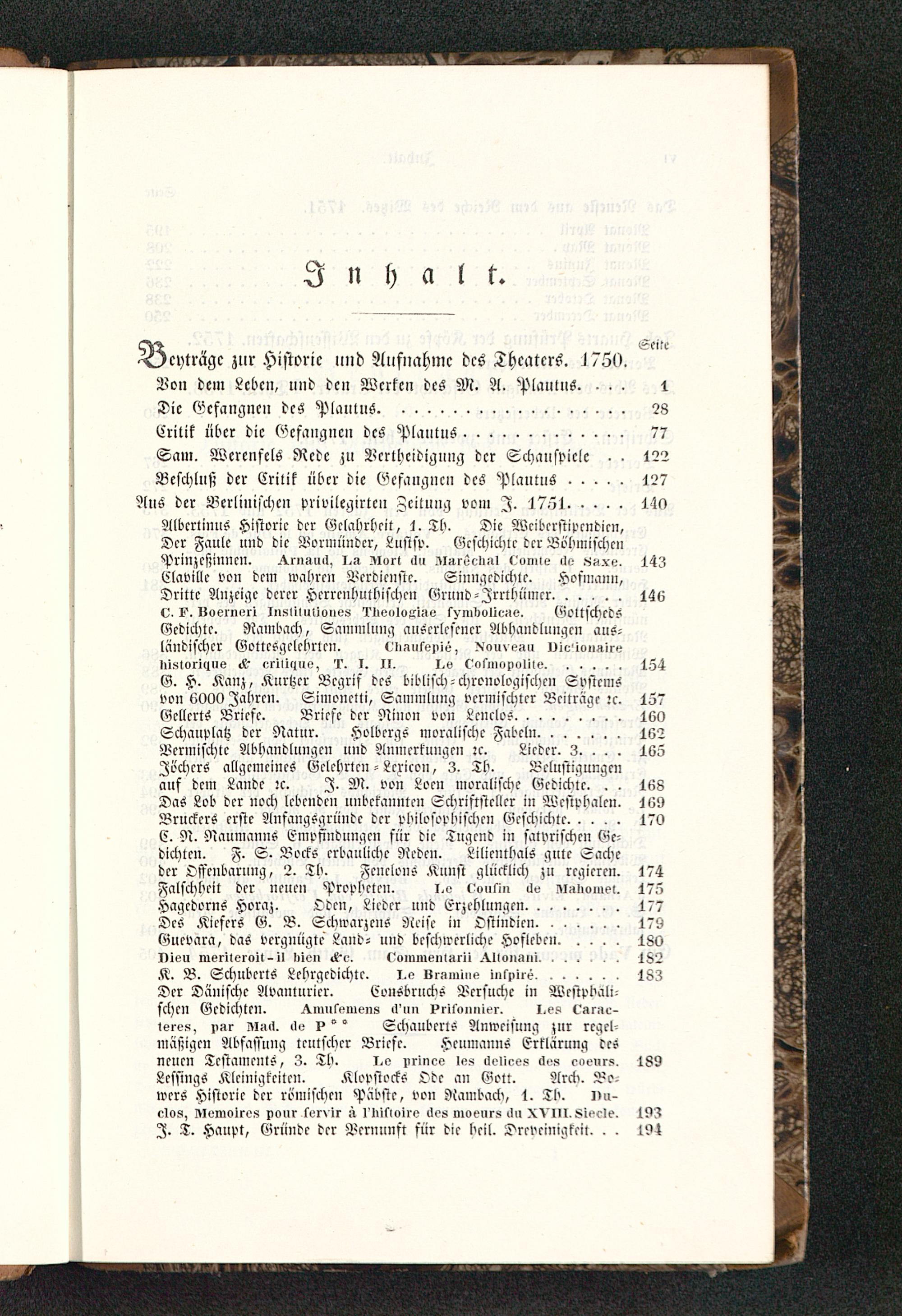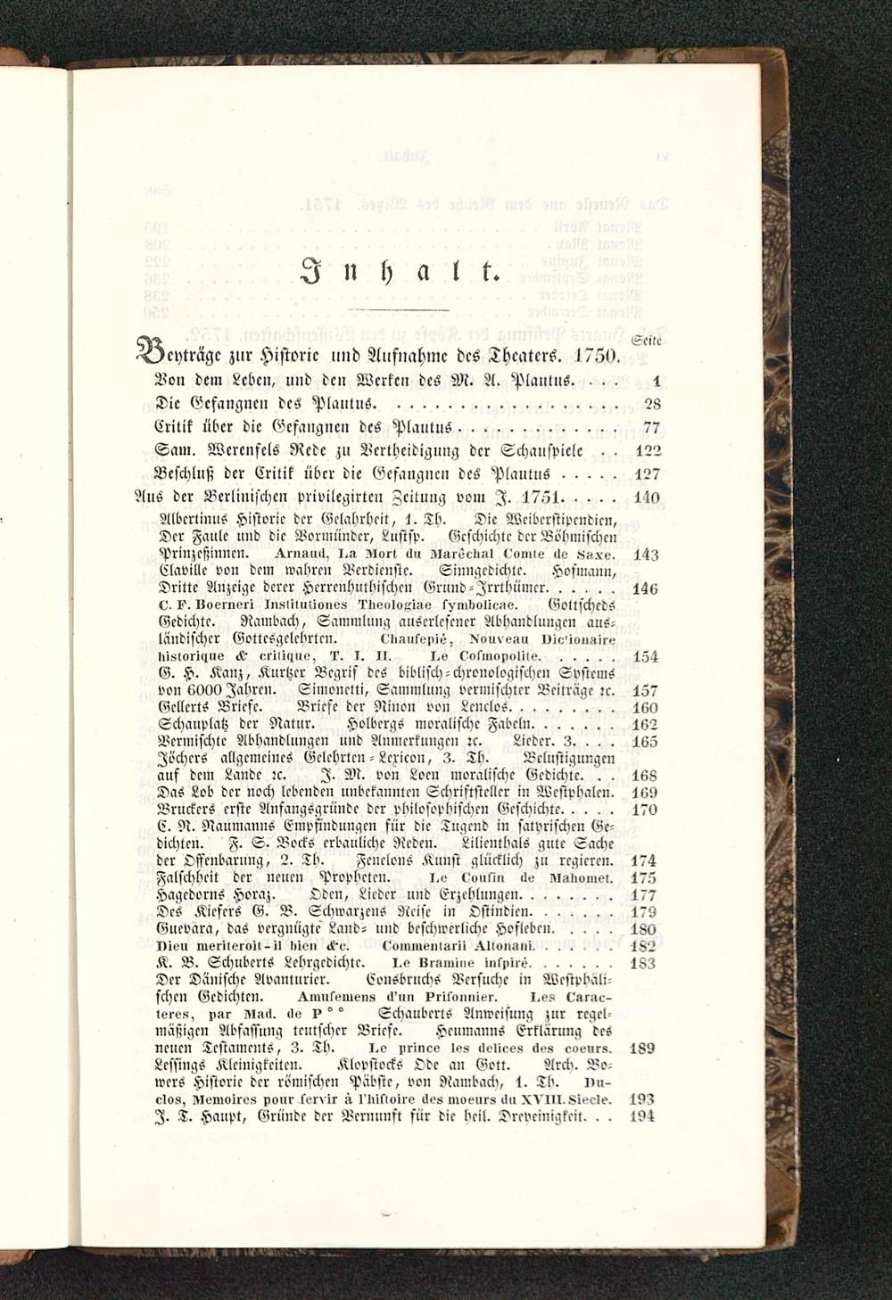 Albcrlinus Historie der Kelabrheit, 1. Th. Die Wciberstipendicn»Der Faule und die Vormünder, Lustsp. Gcschichle der BöbmischenPriuzcfjinncn. .^rnsuck, I.» Zlort «U> zi»reel>»> eomle «I» ««xv. 14zClaville von dem wahre» Verdienste. Sinngedichte, Hofniami,Dritte Anzeige derer Herrenhutbischrn Grund-Irrthümer...... 146