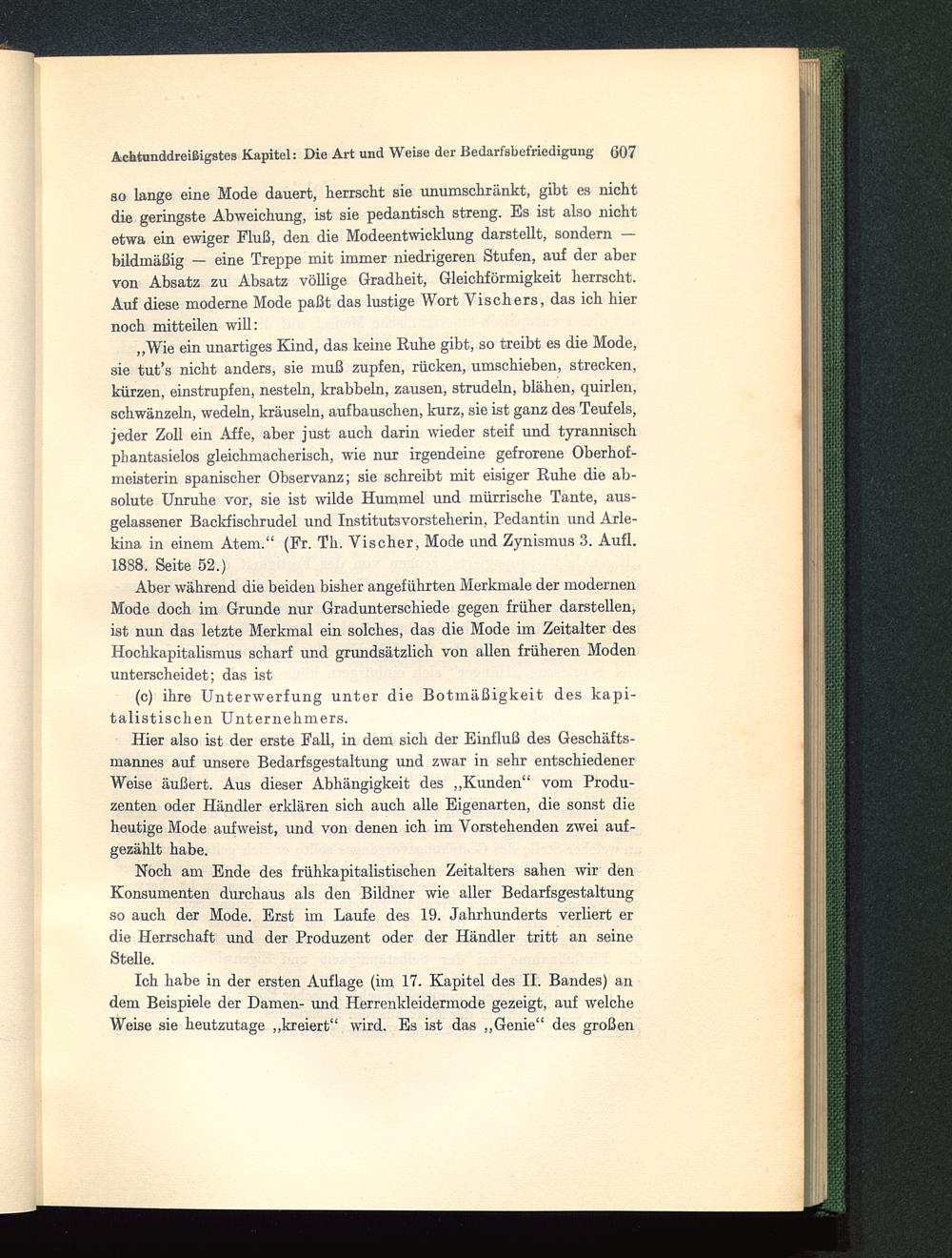 Ich habe in der ersten Auflage (im 17. Kapitel des II. Bandes) andem Beispiele der Damen- und Herrenkleidermode gezeigt, auf welcheWeise sie heutzutage „kreiert“ wird. Es ist das „Genie“ des großen