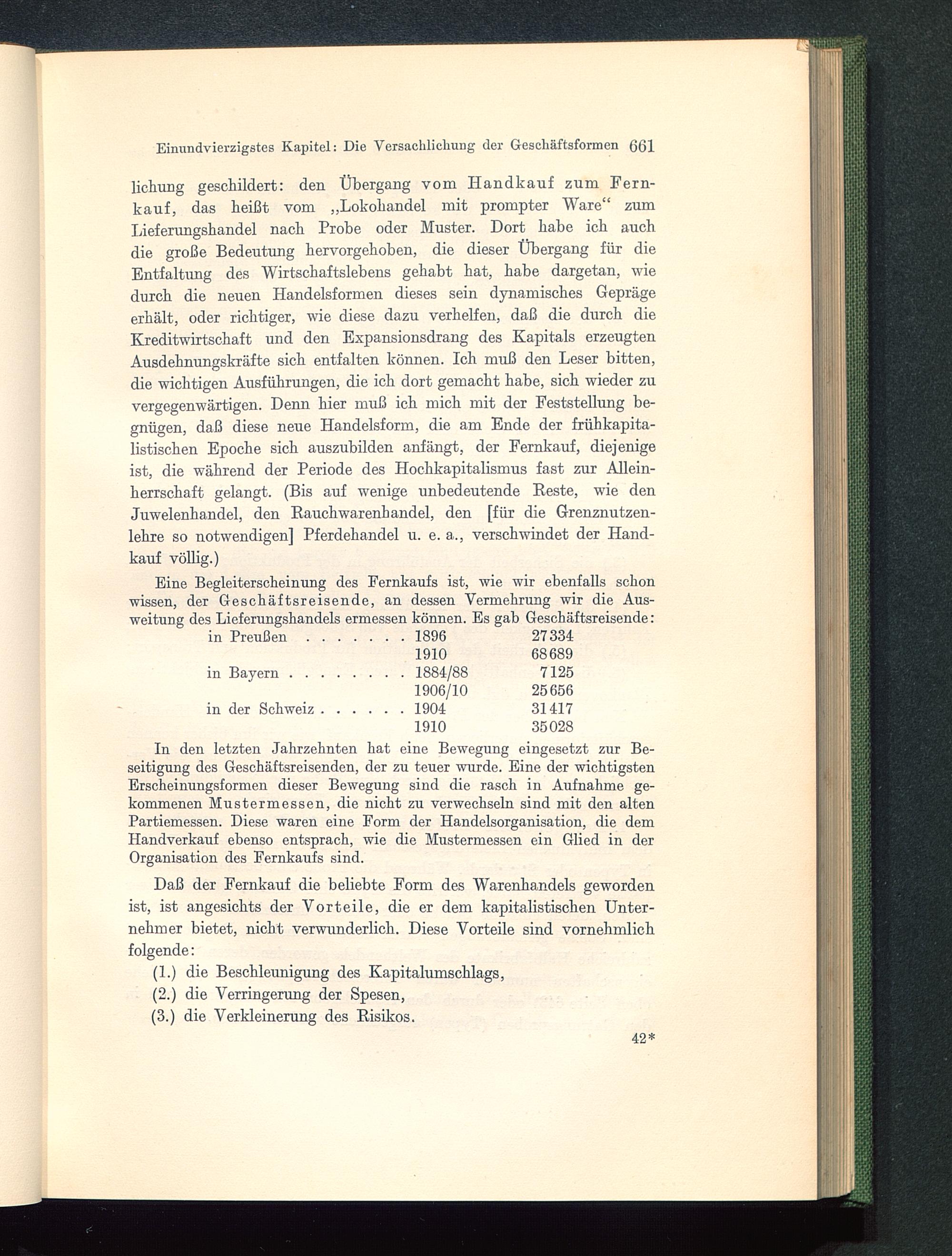 Eine Begleiterscheinung des Fernkaufs ist, wie wir ebenfalls schonwissen, der Geschäftsreisende, an dessen Vermehrung wir die Aus-weitung des Lieferungshandels ermessen können. Es gab Geschäftsreisende :