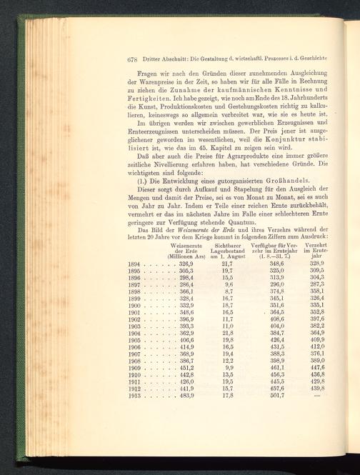 Dieser sorgt durch Aufkauf und Stapelung für den Ausgleich derMengen und damit der Preise, sei es von Monat zu Monat, sei es auchvon Jahr zu Jahr. Indem er Teile einer reichen Ernte zurückbehält,vermehrt er das im nächsten Jahre im Falle einer schlechteren Ernte