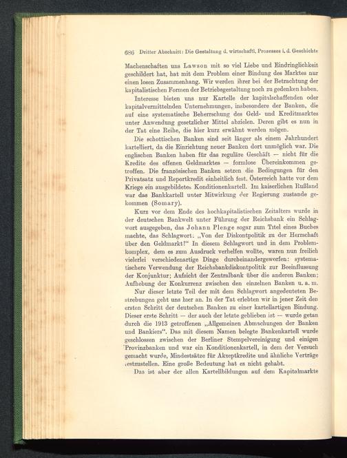 Kurz vor dem Ende des hochkapitalistischen Zeitalters wurde inder deutschen Bankwelt unter Führung der Reichsbank ein Schlag-wort ausgegeben, das Johann PI enge sogar zum Titel eines Buchesmachte, das Schlagwort: „Von der Diskontpolitik zu der Herrschaftüber den Geldmarkt!“ In diesem Schlagwort und in dem Problem-komplex, dem es zum Ausdruck verhelfen wollte, waren nun freilichvielerlei verschiedenartige Dinge durcheinandergeworfen: systema-tischere Verwendung der Reichsbankdiskontpolitik zur Beeinflussungder Konjunktur; Aufsicht der Zentralbank über die anderen Banken;Aufhebung der Konkurrenz zwischen den einzelnen Banken u. a. m.