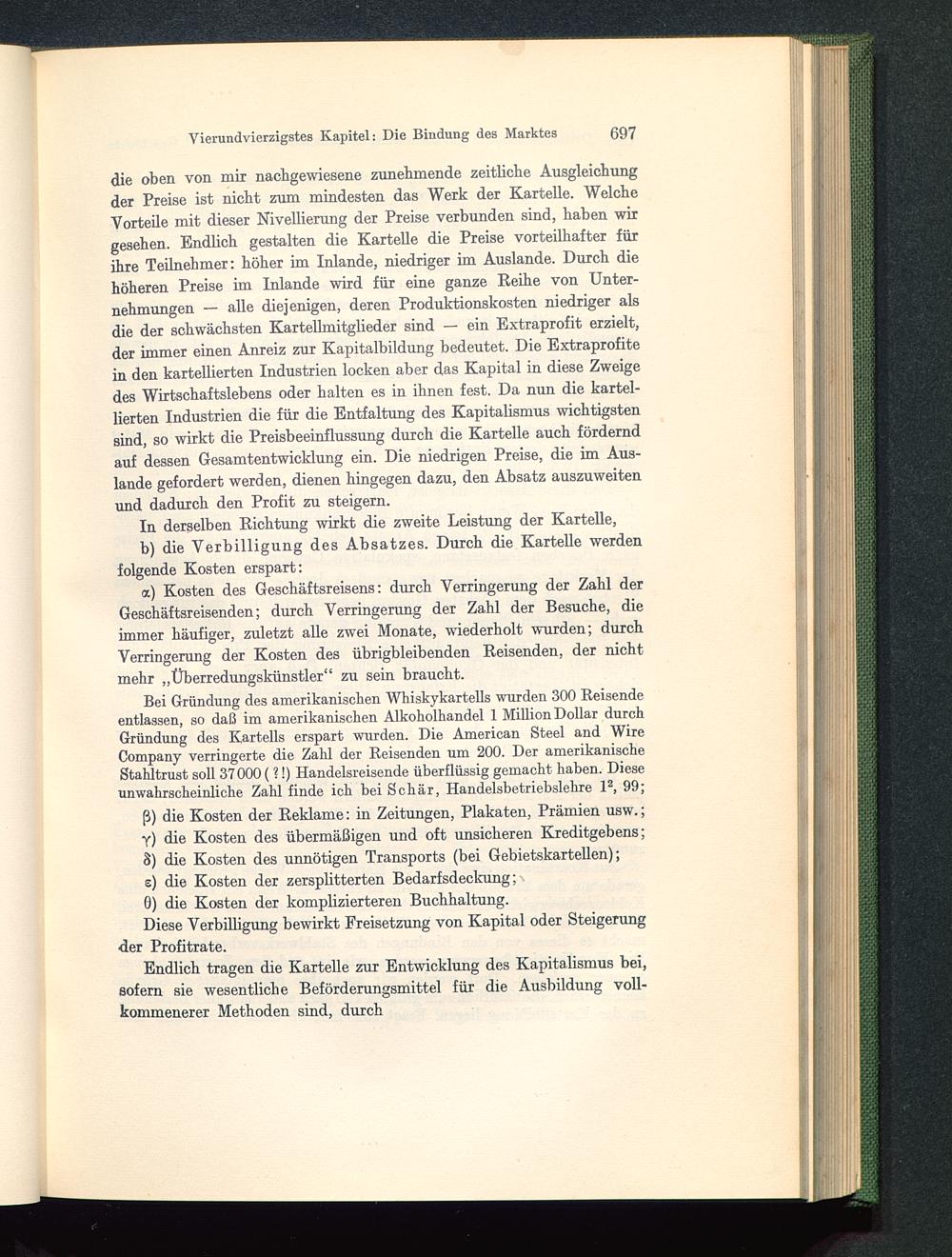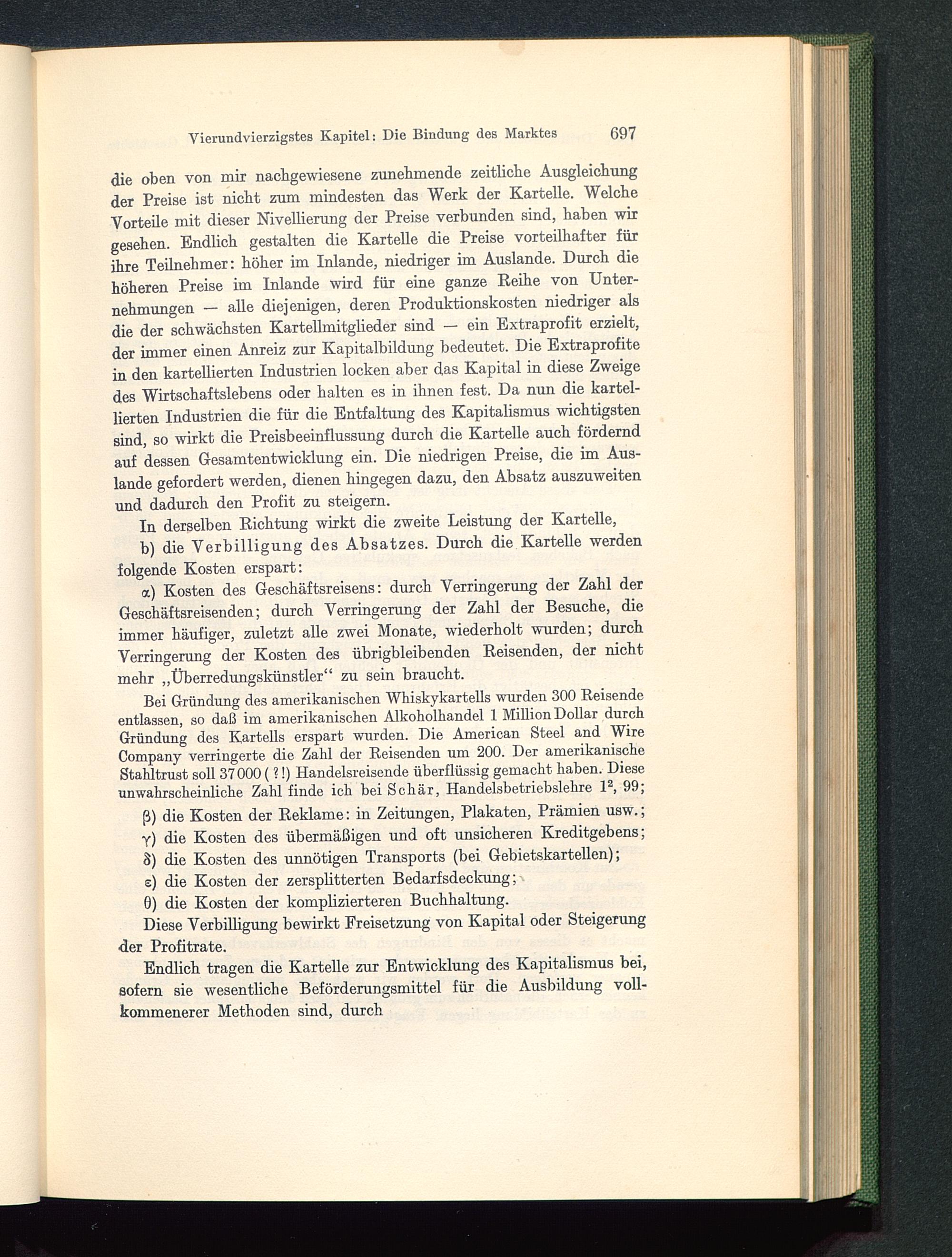 Bei Gründung des amerikanischen Whiskykartells wurden 300 Reisendeentlassen, so daß im amerikanischen Alkoholhandel 1 Million Dollar durchGründung des Kartells erspart wurden. Die American Steel and WireCompany verringerte die Zahl der Reisenden um 200. Der amerikanischeStahltrust soll 37 000 (?!) Handelsreisende überflüssig gemacht haben. Dieseunwahrscheinliche Zahl finde ich bei Schär, Handelsbetriebslehre l 2 , 99;
