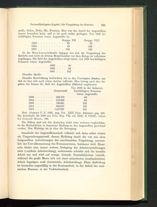 Stat. Abstract U. S. 1923, pag. 314. XIII. Cens. Abstract, pag. 438.Die Anteilzahl für 1899 aus Cens. Rep. VII, vol. 1902, S. CXIII; zitiertbei Conrad-Hesse , 186.