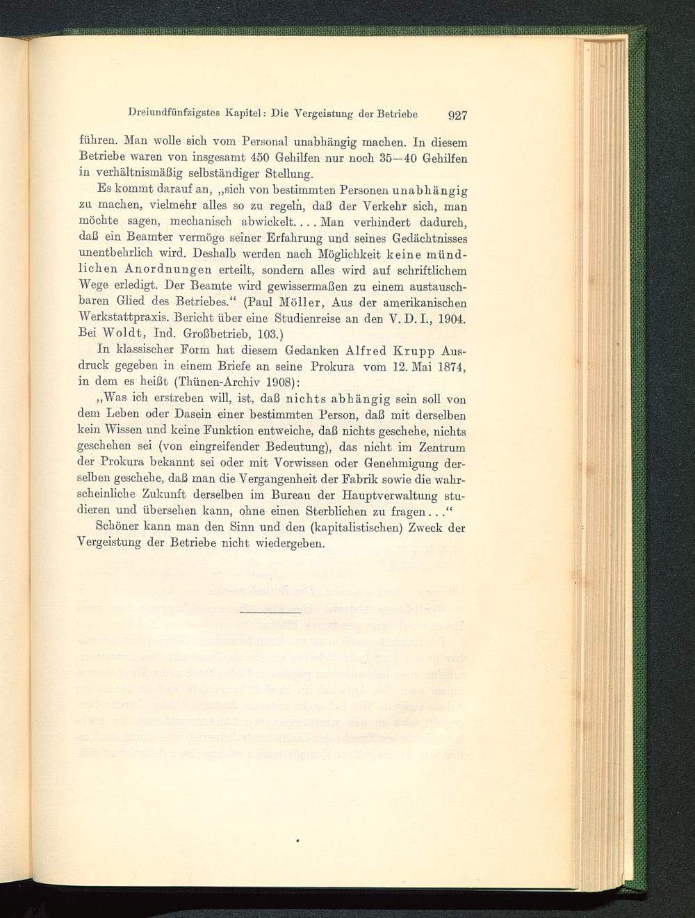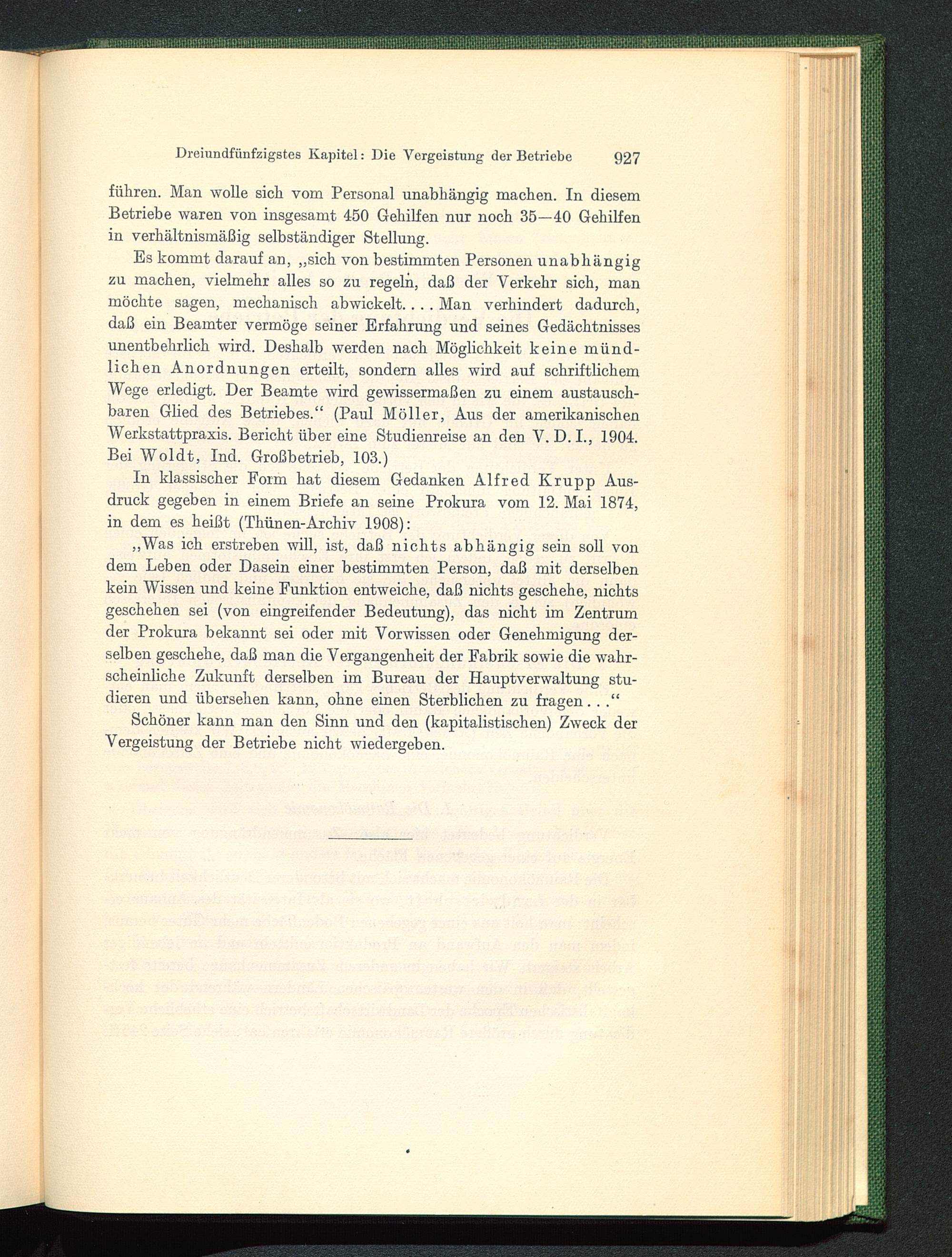 In klassischer Form hat diesem Gedanken Alfred Krupp Aus-druck gegeben in einem Briefe an seine Prokura vom 12. Mai 1874,in dem es heißt (Thünen-Archiv 1908):
