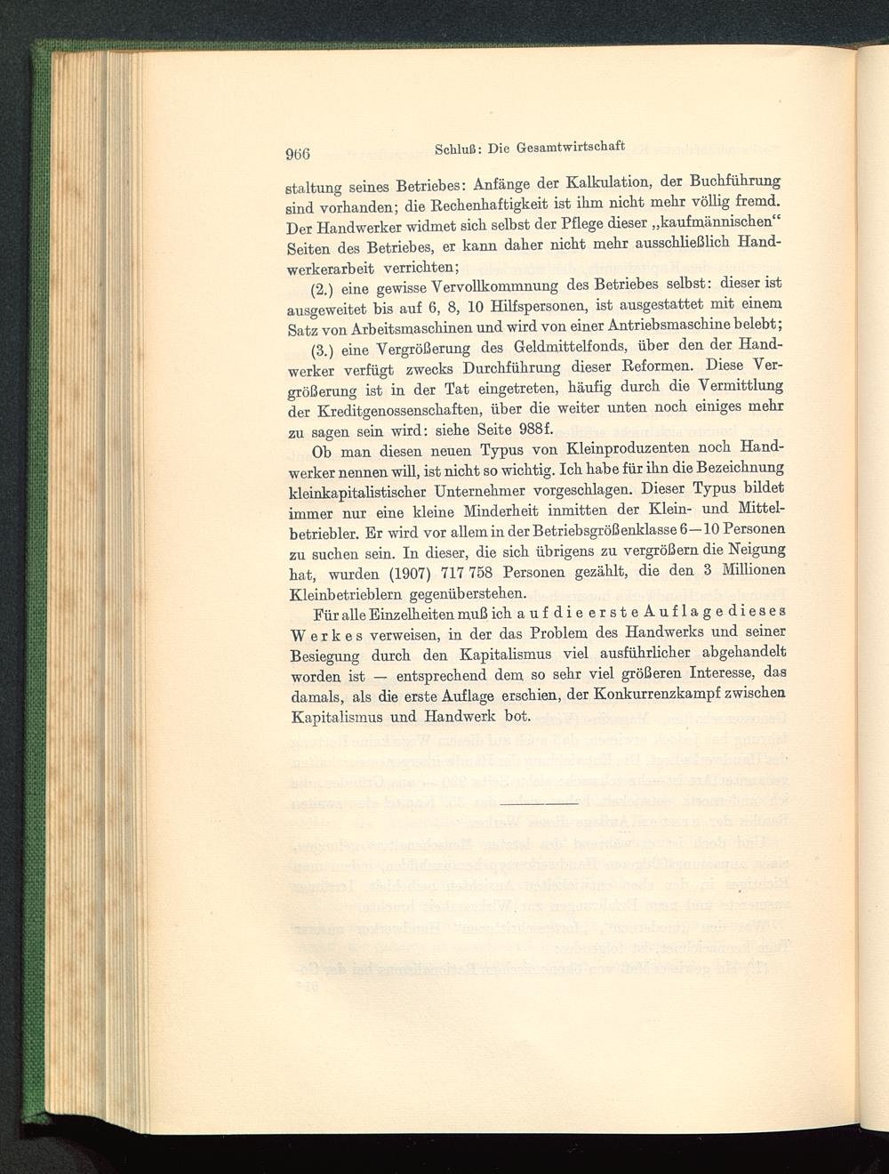 Für alle Einzelheiten muß ich aufdieersteAuflagediesesW e r k e s verweisen, in der das Problem des Handwerks und seinerBesiegung durch den Kapitalismus viel ausführlicher abgehandeltworden ist — entsprechend dem so sehr viel größeren Interesse, dasdamals, als die erste Auflage erschien, der Konkurrenzkampf zwischenKapitalismus und Handwerk bot.