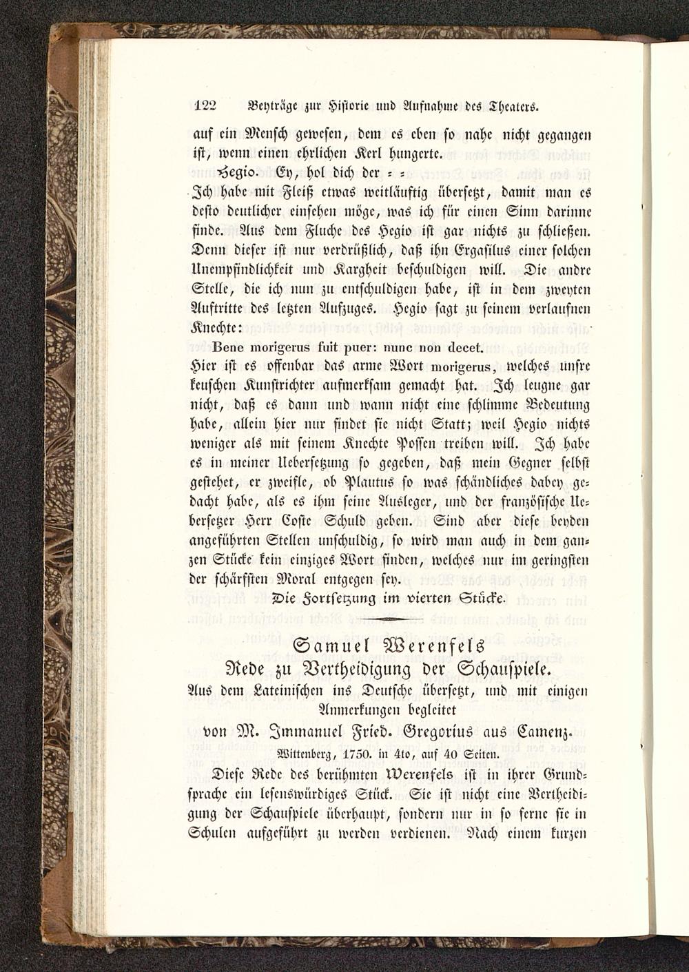 Wittmbcr>z, 1750. i» 4to, aus 4» Scilc».Diese Rede des berühmten rVcrenfcls ist in ihrer Grund-sprache ei» lcscuSwürdigcS Stück. Sie ist nicht eine Vertheidi-gung der Schauspiclc überhaupt, sondern nur in so ferne sie inSchulen aufgeführt zu werden vcrdicncn. Nach cincm kurzcn