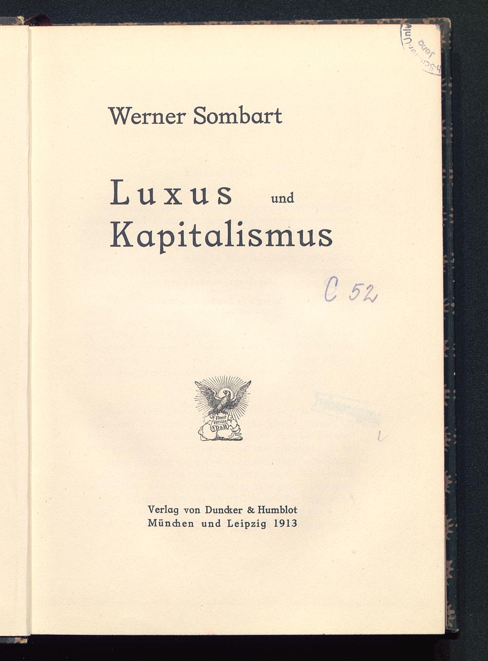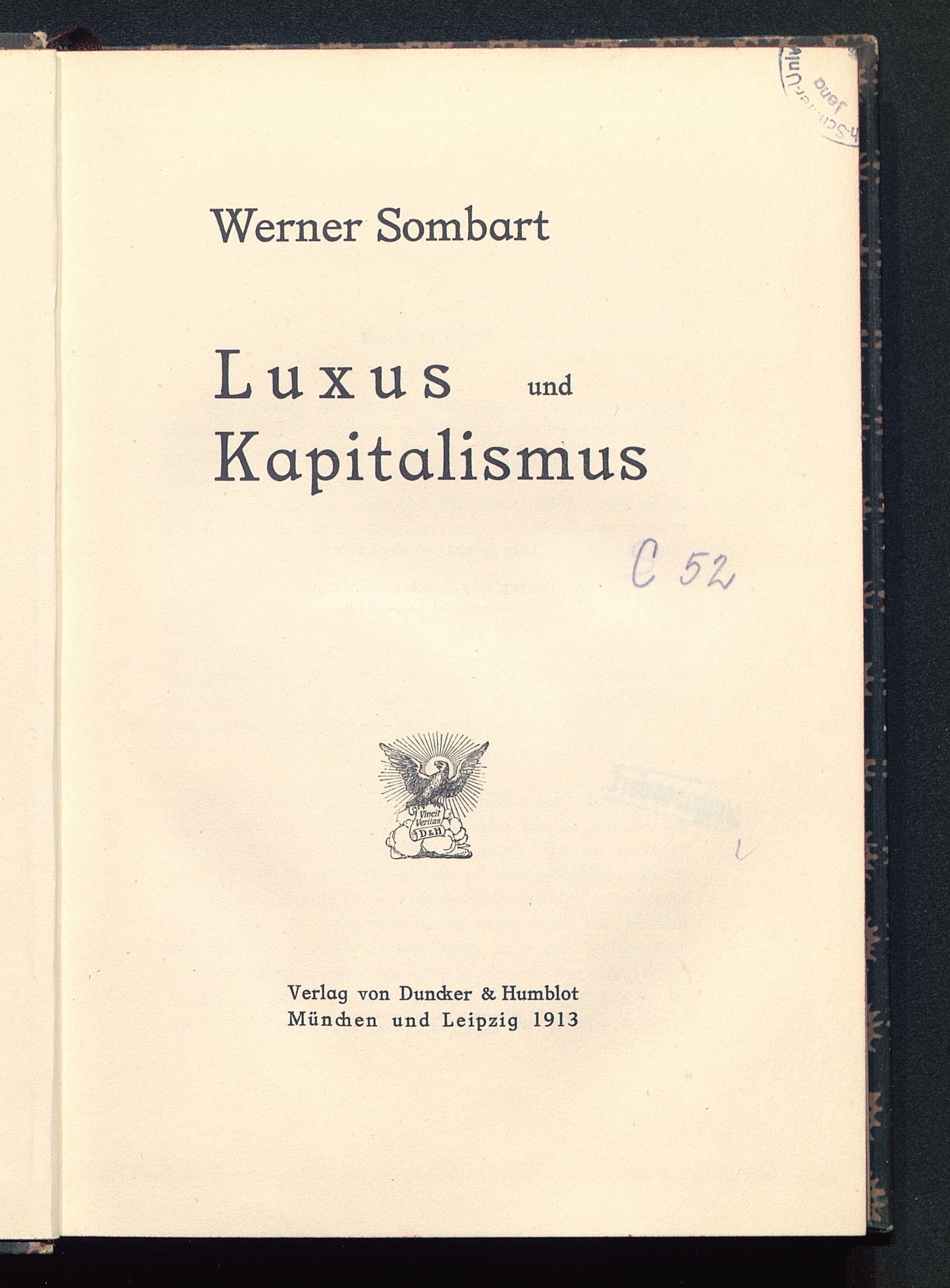 Werner Sombart LUXUS undKapitalismusC 5h7 Vinci1 1'iferrWVlVerlag von Duncker & HumblotMündien und Leipzig 1913
