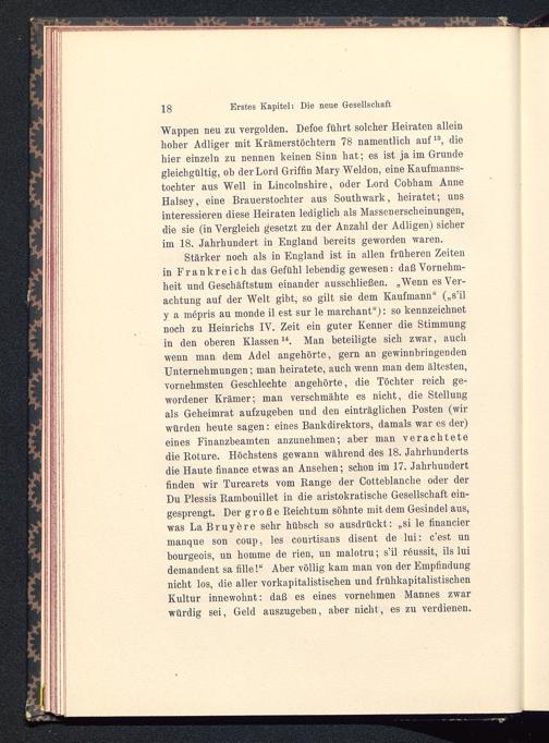 Wappen neu zu vergolden. Defoe führt solcher Heiraten alleinhoher Adliger mit Krämerstöchtern 78 namentlich auf 13 , diehier einzeln zu nennen keinen Sinn hat; es ist ja im Grundegleichgültig, ob der Lord Griffin Mary Weldon, eine Kaufmanns-tochter aus Well in Lincolnshire, oder Lord Cobham AnneHalsey, eine Brauerstochter aus Southwark, heiratet; unsinteressieren diese Heiraten lediglich als Massenerscheinungen,die sie (in Vergleich gesetzt zu der Anzahl der Adligen) sicherim 18. Jahrhundert in England bereits geworden waren.
