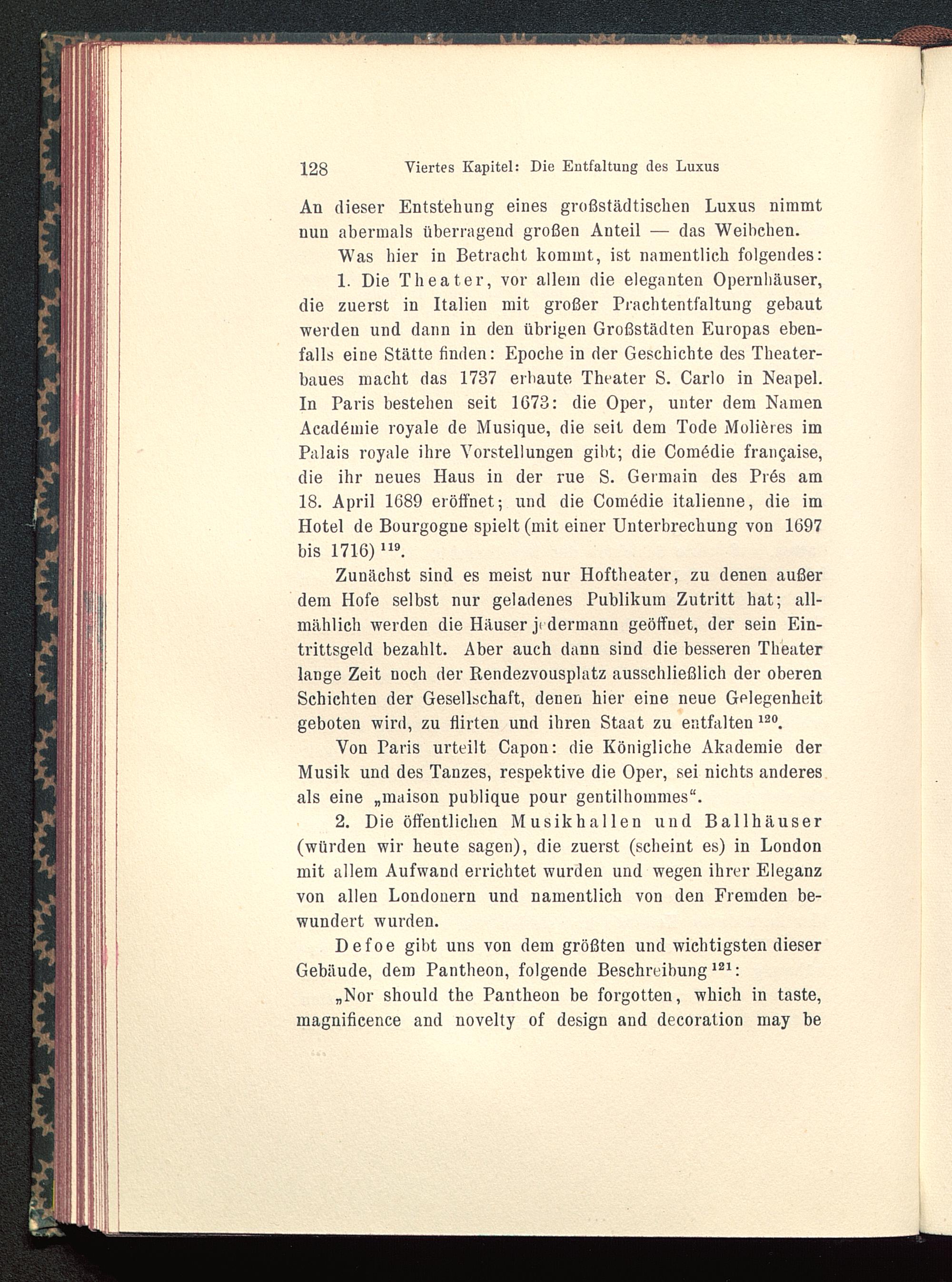 2. Die öffentlichen Musikhallen und Ballhäuser(würden wir heute sagen), die zuerst (scheint es) in London mit allem Aufwand errichtet wurden und wegen ihrer Eleganzvon allen Londonern und namentlich von den Fremden be-wundert wurden.