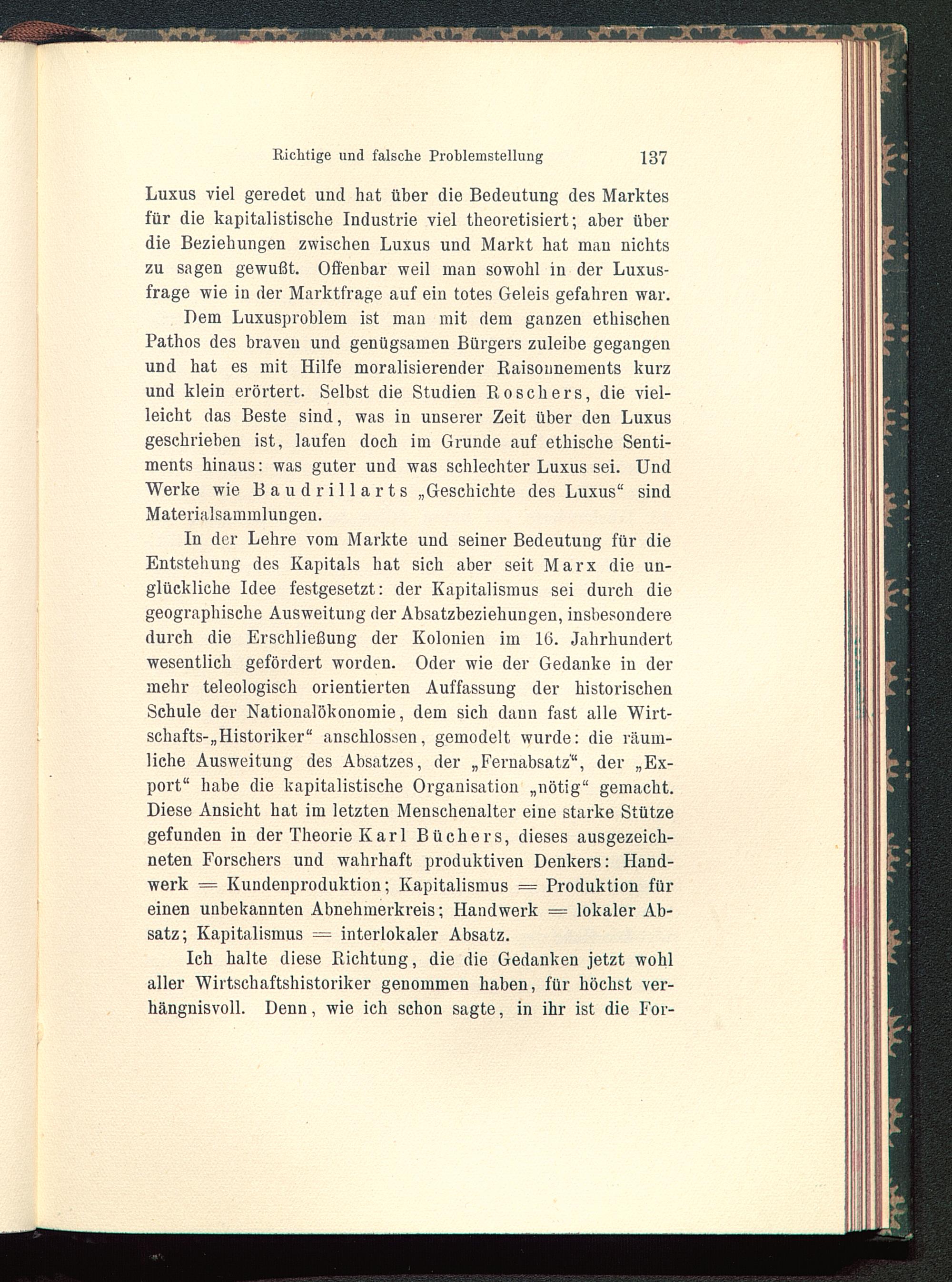 Luxus viel geredet und hat über die Bedeutung des Marktesfür die kapitalistische Industrie viel theoretisiert; aber überdie Beziehungen zwischen Luxus und Markt hat mau nichtszu sagen gewußt. Offenbar weil man sowohl in der Luxus-frage wie in der Marktfrage auf ein totes Geleis gefahren war.