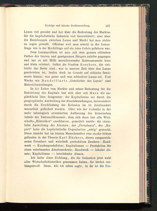 Dem Luxusproblem ist mau mit dem ganzen ethischenPathos des braven und genügsamen Bürgers zuleibe gegangenund hat es mit Hilfe moralisierender Raisounements kurzund klein erörtert. Selbst die Studien Roschers, die viel-leicht das Beste sind, was in unserer Zeit über den Luxusgeschrieben ist, laufen doch im Grunde auf ethische Senti-ments hinaus: was guter und was schlechter Luxus sei. UndWerke wie Baudrillarts „Geschichte des Luxus“ sindMaterialsammlungen.
