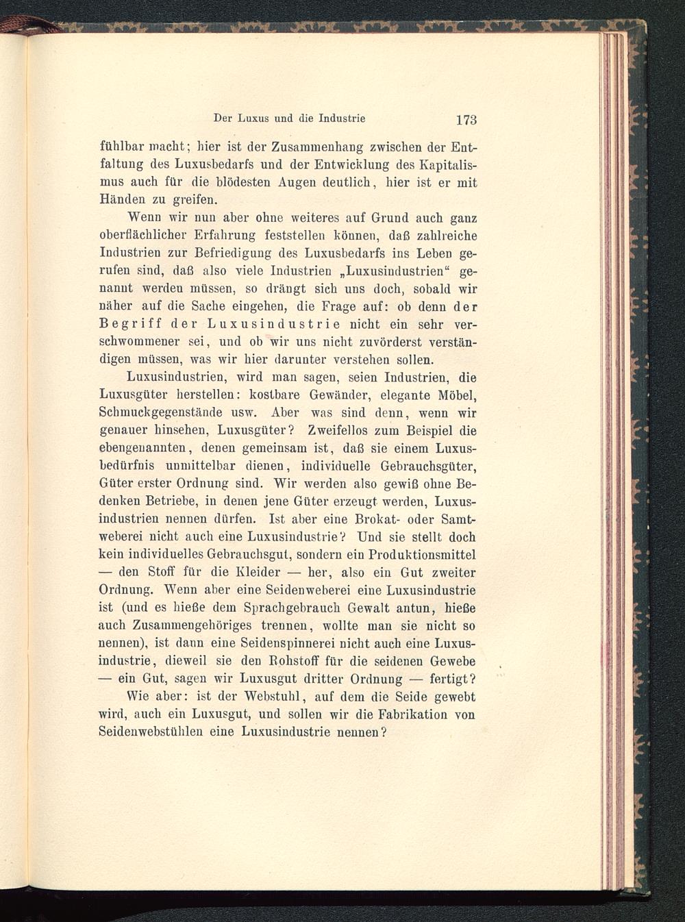 Wie aber: ist der Webstuhl, auf dem die Seide gewebtwird, auch ein Luxusgut, und sollen wir die Fabrikation vonSeidenwebstühlen eine Luxusindustrie nennen?
