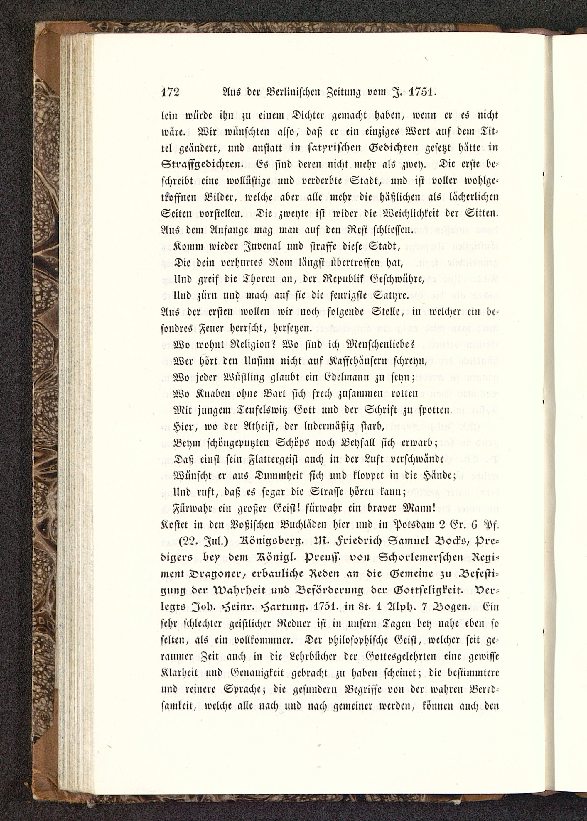 172 Ans der Berlinischen Zeitung vom Z. 1751.