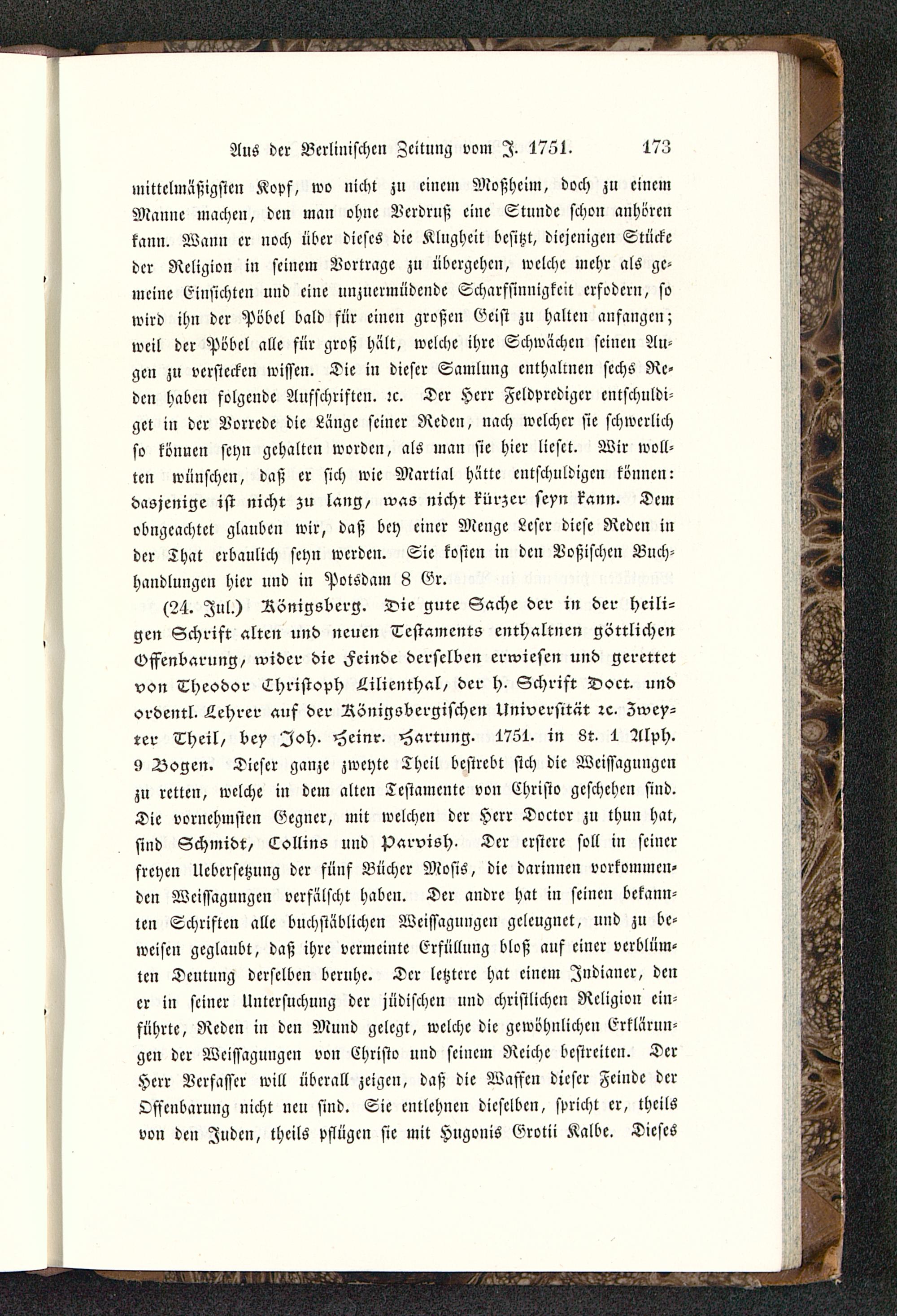 Aus der Berlinischen Zeitung vom I. 1751. 173