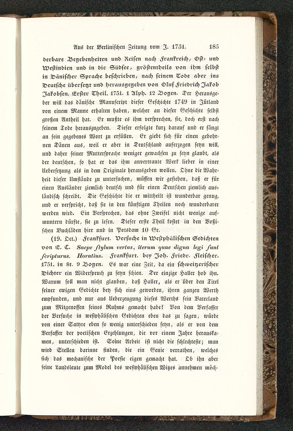 Aus der Berlinischen Zeitung vom I. 1751. 185