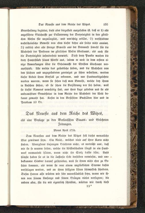 als eine Beylage zu den Berlinischen Staats- und Gelehrten