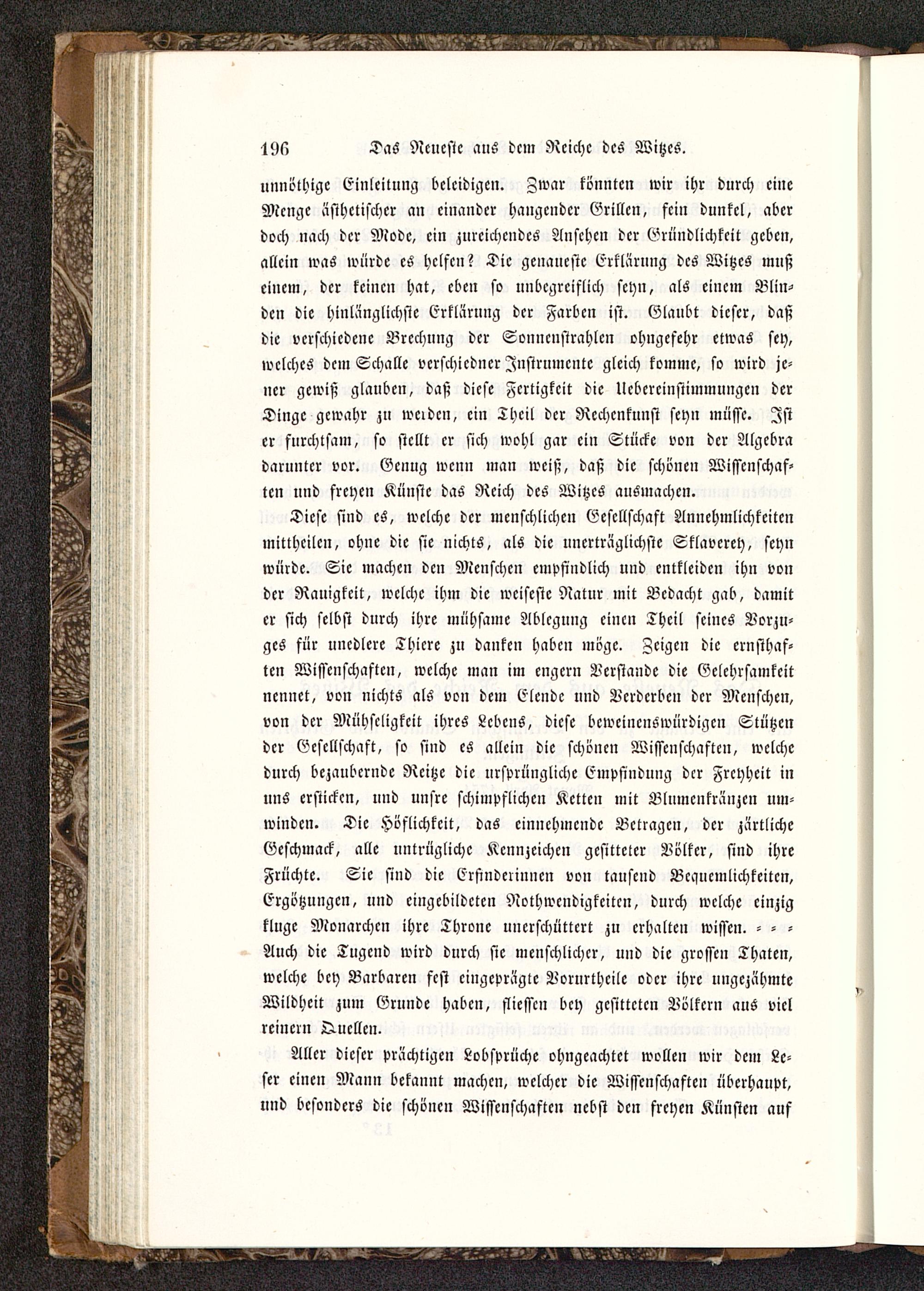 Aller dieser prächtigen Lobsprüche vhngeachtct wollen wir dem Le-ser einen Mann bekannt machen, welcher die Wissenschaften überhaupt,und besonders die schönen Wissenschaften nebst den freyen Künsten auf
