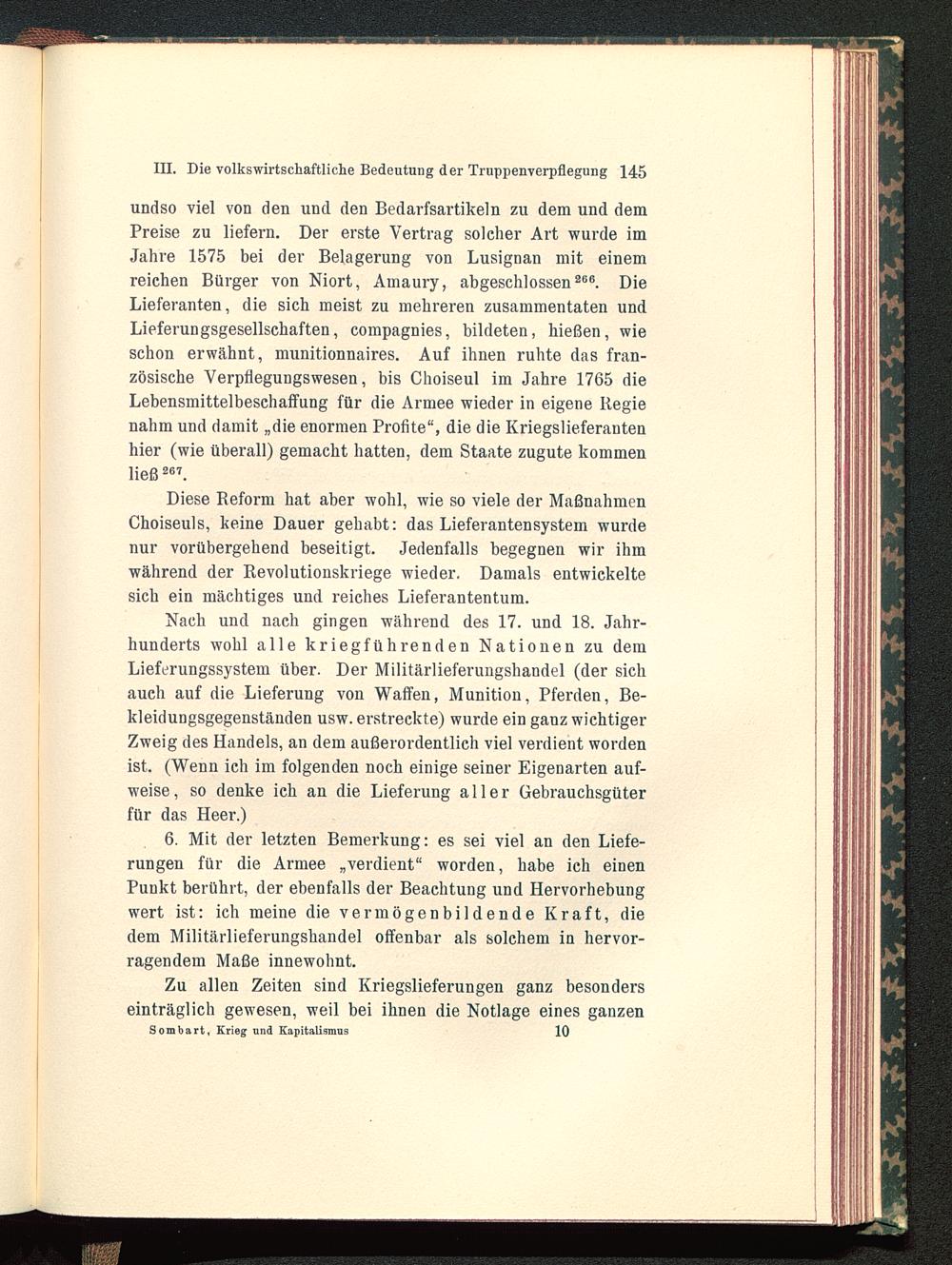 Nach und nach gingen während des 17. und 18. Jahr-hunderts wohl alle kriegführenden Nationen zu demLieferungssystem über. Der Militärlieferungshandel (der sichauch auf die Lieferung von Waffen, Munition, Pferden, Be-kleidungsgegenständen usw. erstreckte) wurde ein ganz wichtigerZweig des Handels, an dem außerordentlich viel verdient wordenist. (Wenn ich im folgenden noch einige seiner Eigenarten auf-weise, so denke ich an die Lieferung aller Gebrauchsgüterfür das Heer.)
