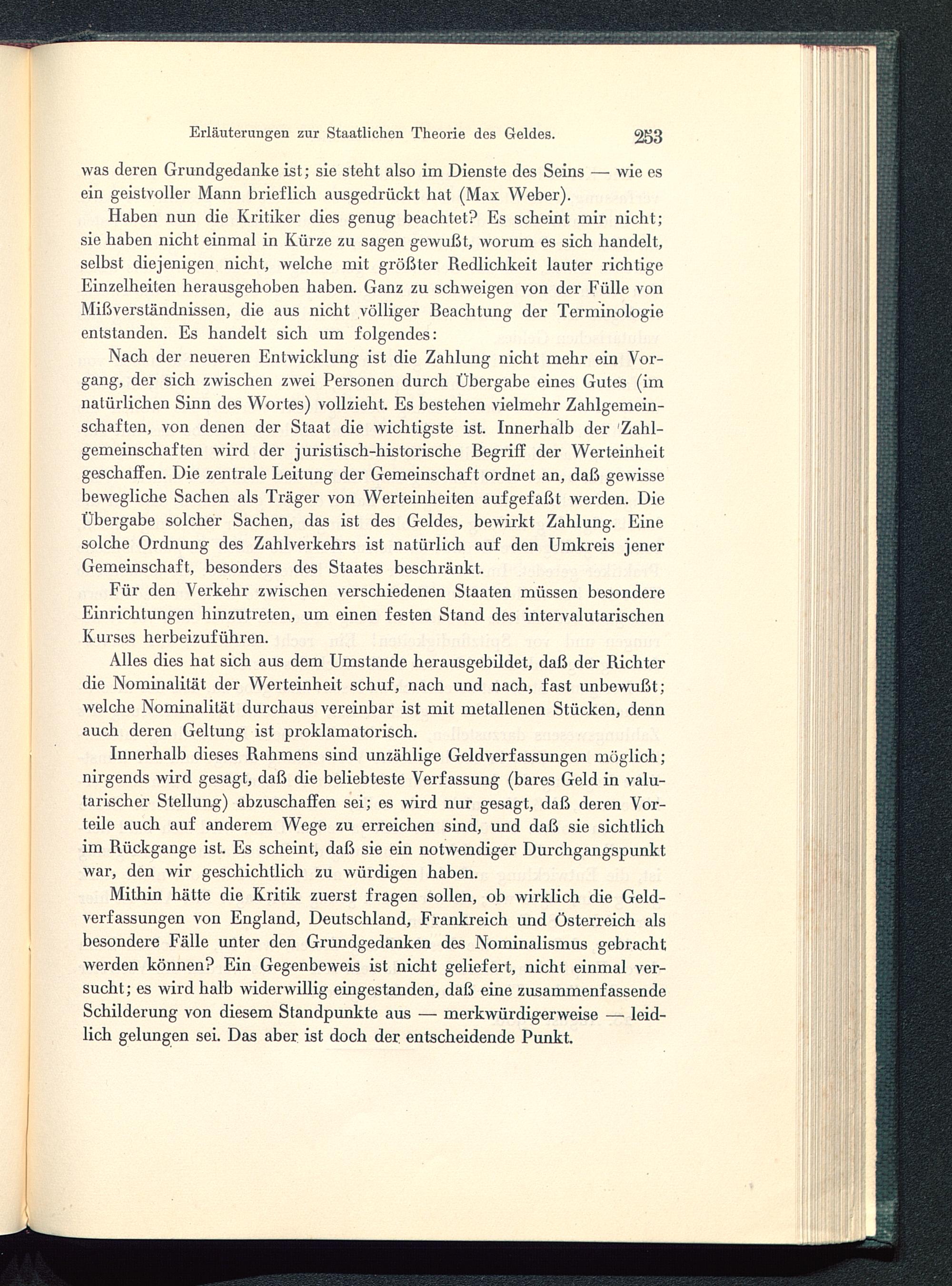 Alles dies hat sich aus dem Umstande herausgebildet, daß der Richterdie Nominalilät der Werteinheit schuf, nach und nach, fast unbewußt;welche Nominalität durchaus vereinbar ist mit metallenen Stücken, dennauch deren Geltung ist proklamatorisch.