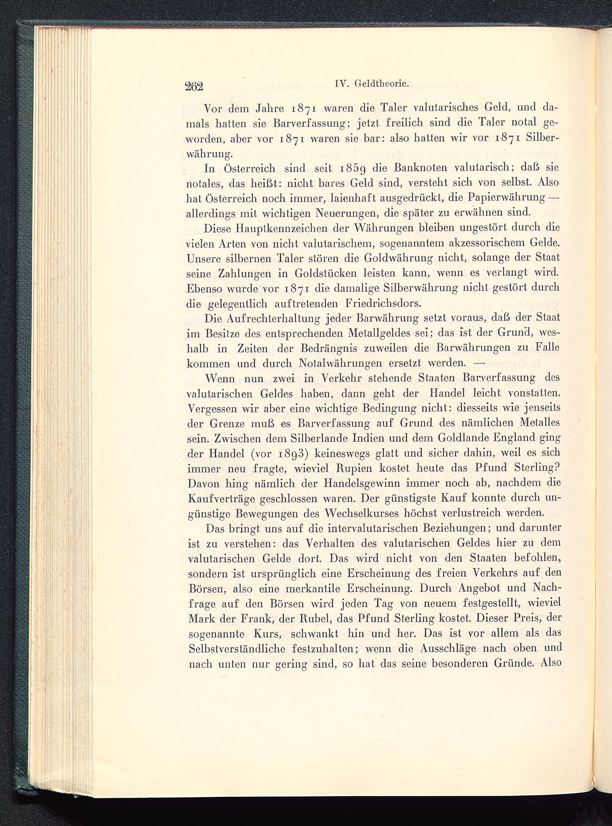 Vor dem Jahre 1871 waren die Taler valutarisches Geld, und da-mals hatten sie Barverfassung; jetzt freilich sind die Taler notal ge-worden, aber vor 1871 waren sie bar: also halten wir vor 1871 Silber-währung.