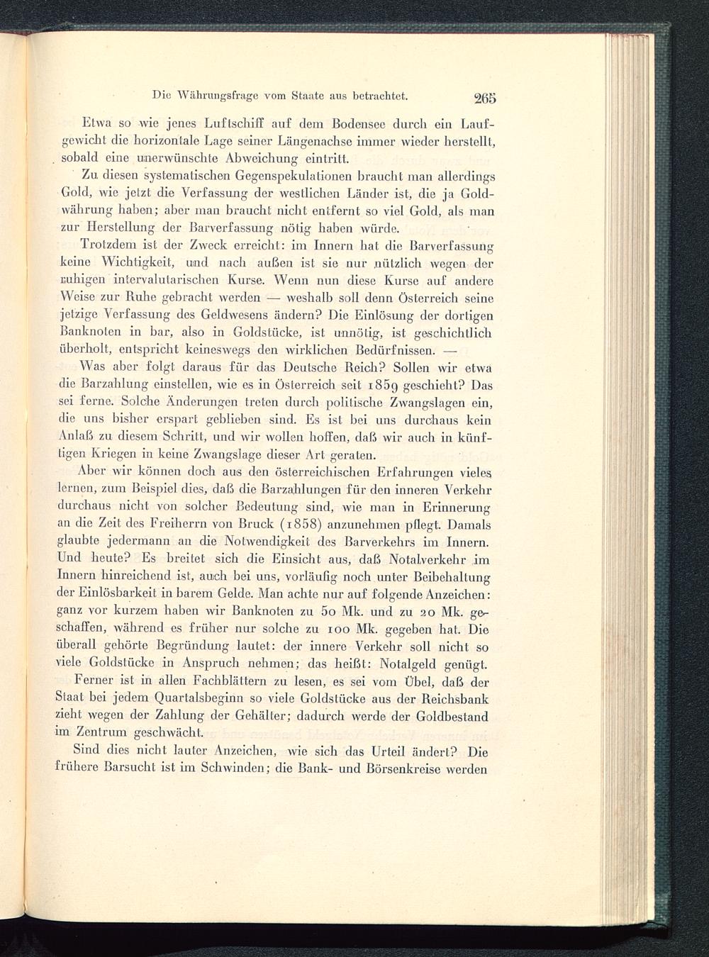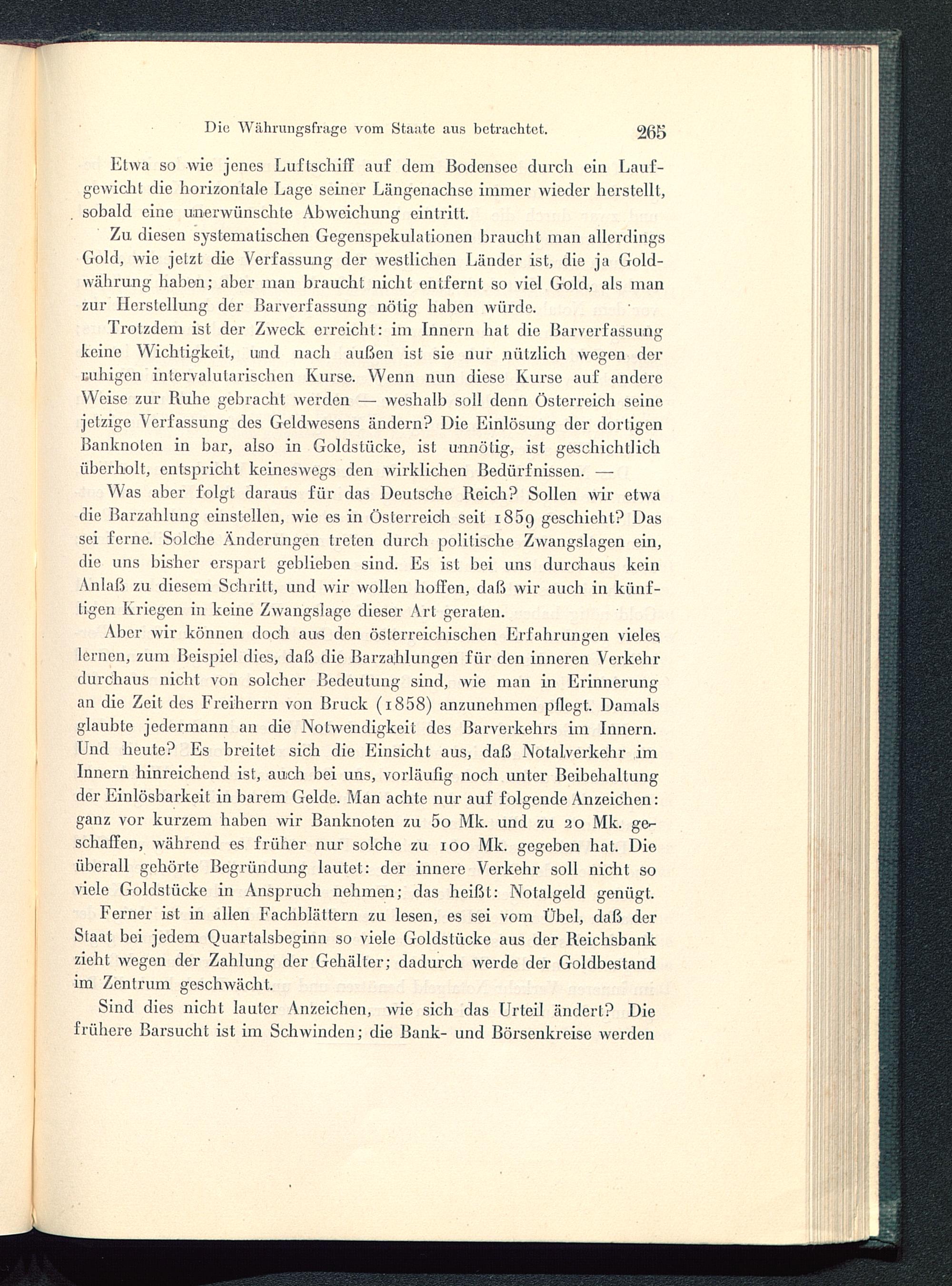 Was aber folgt daraus für das Deutsche Reich? Sollen wir etwadie Barzahlung einstellen, wie es in Österreich seit 1869 geschieht? Dassei ferne. Solche Änderungen treten durch politische Zwangslagen ein,die uns bisher erspart geblieben sind. Es ist hei uns durchaus keinAnlaß zu diesem Schritt, und wir wollen hoffen, daß wir auch in künf-tigen Kriegen in keine Zwangslage dieser Art geraten.