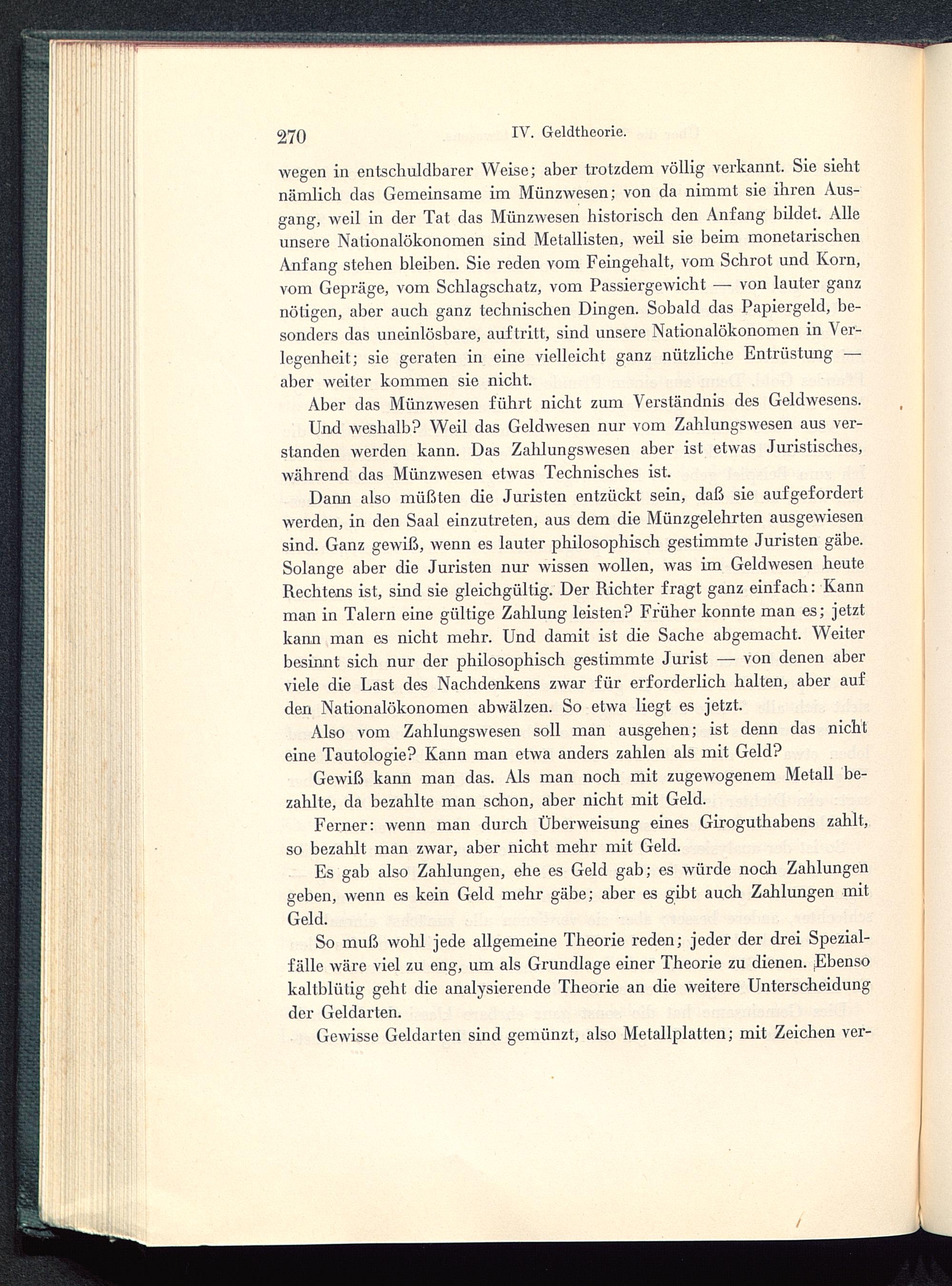 Und weshalb? Weil das Geldwesen nur vom Zahlungswesen aus ver-standen werden kann. Das Zahlungswesen aber ist etwas Juristisches,während das Münzwesen etwas Technisches ist.