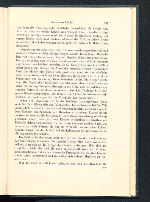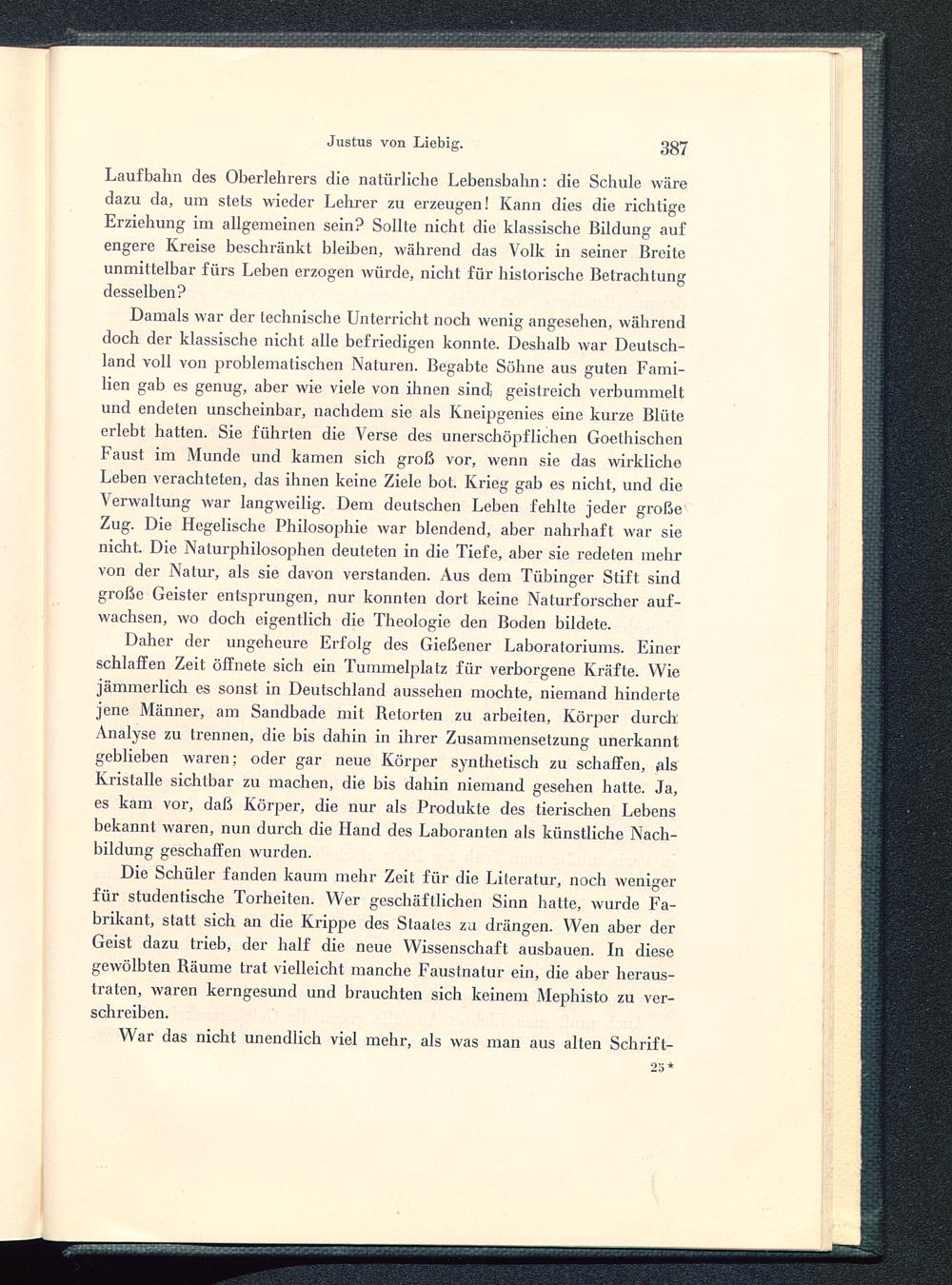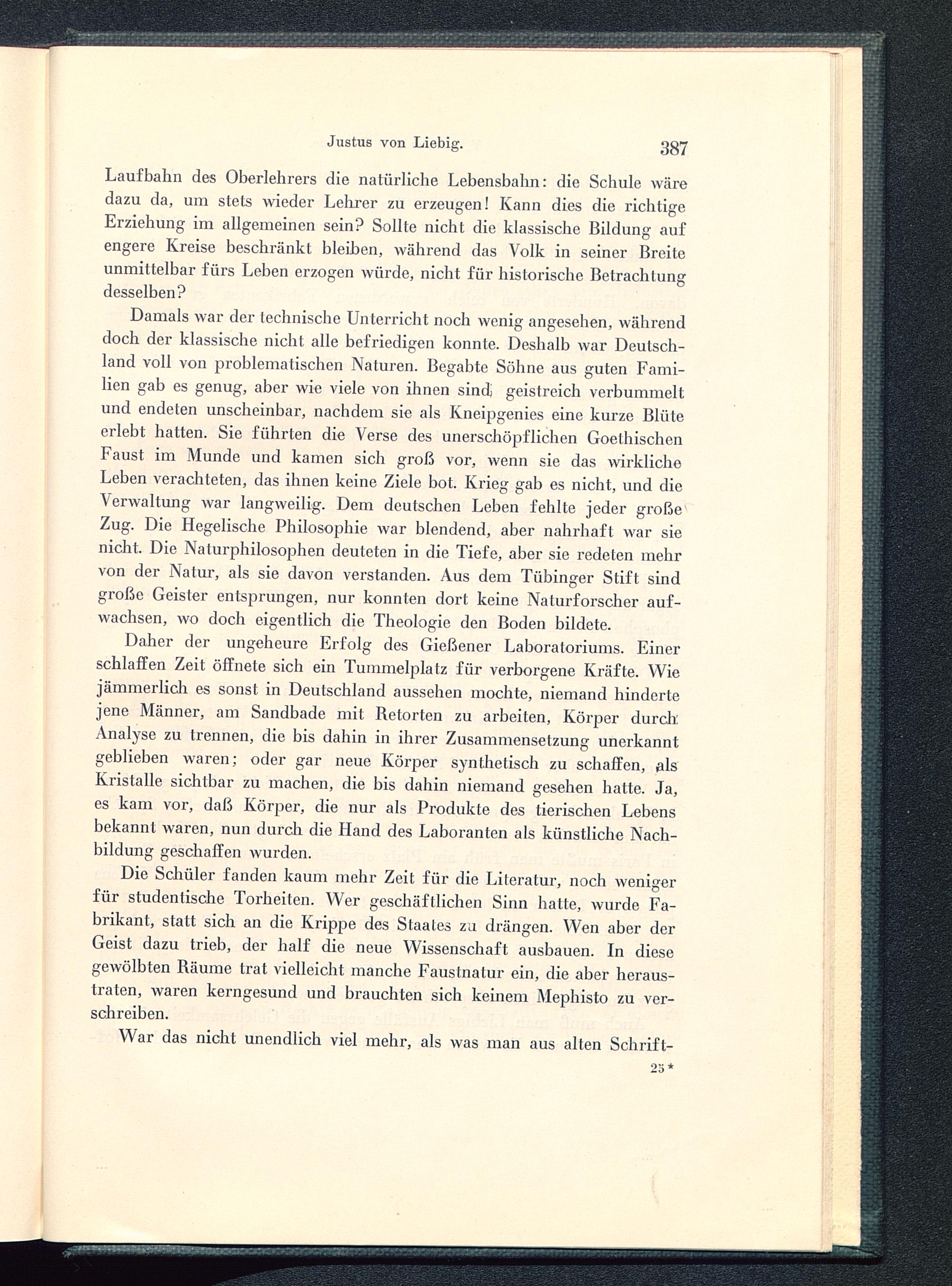 Die Schüler fanden kaum mehr Zeit für die Literatur, noch wenigerfür studentische Torheiten. Wer geschäftlichen Sinn hatte, wurde Fa-brikant, statt sich an die Krippe des Staates zu drängen. Wen aber derGeist dazu trieb, der half die neue Wissenschaft ausbauen. In diesegewölbten Räume trat vielleicht manche Faustnatur ein, die aber heraus-traten, waren kerngesund und brauchten sich keinem Mephisto zu ver-schreiben.
