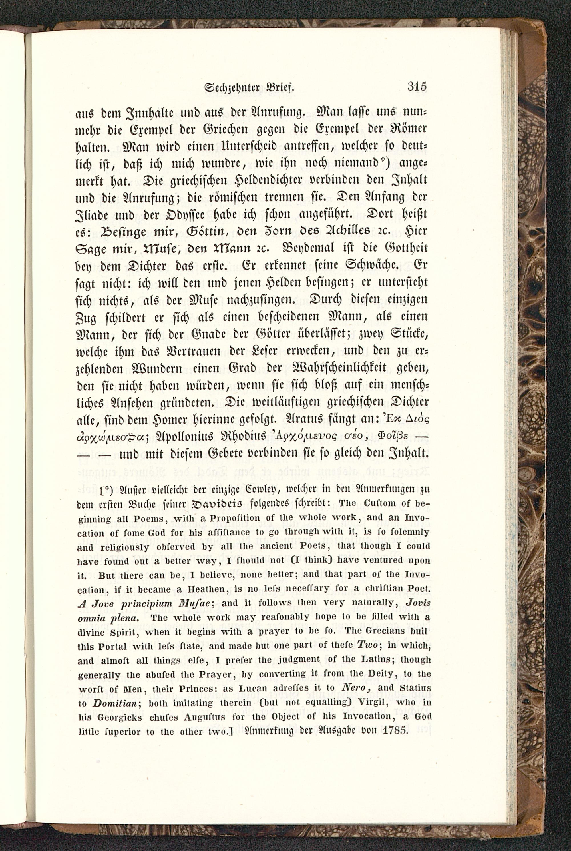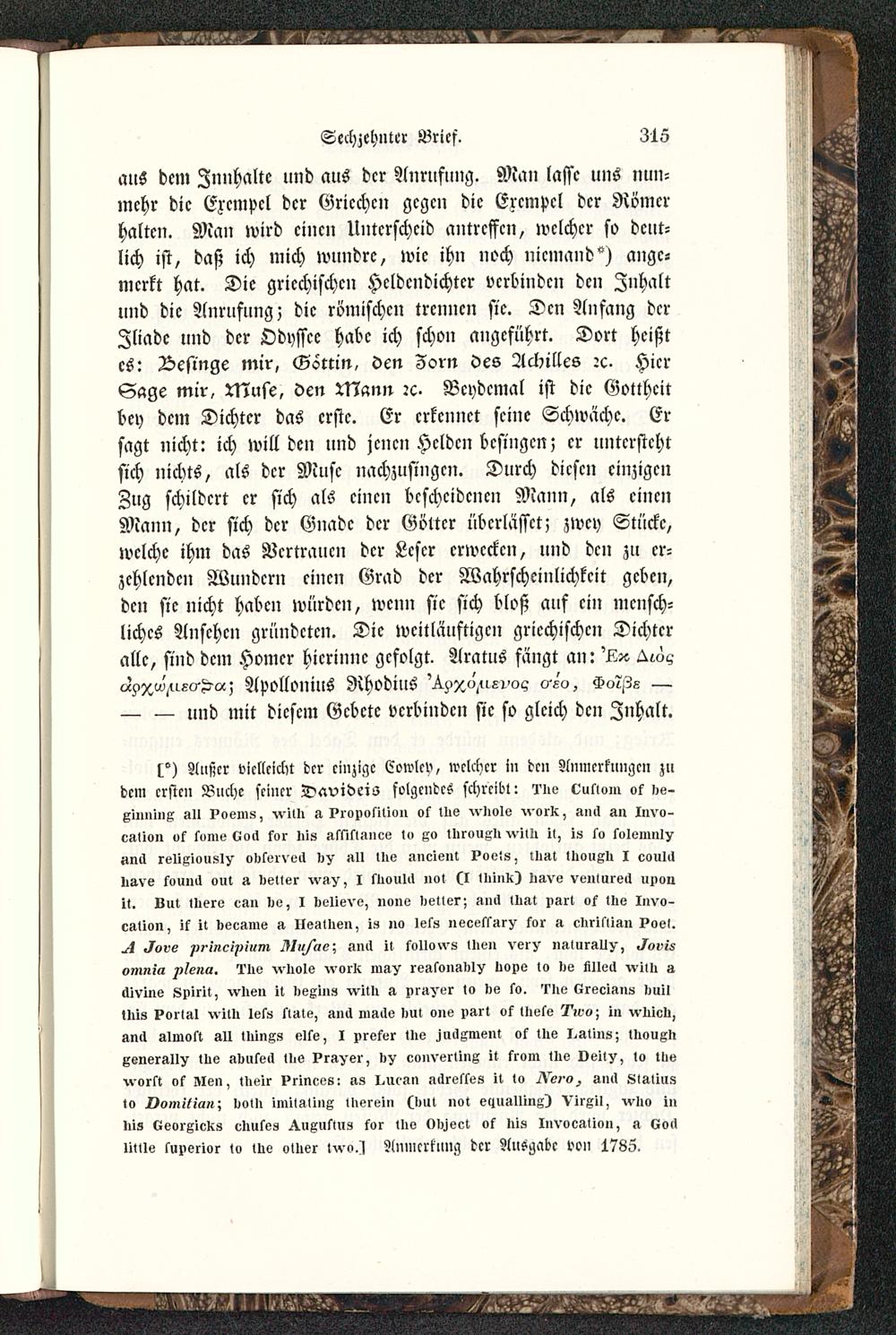 l°) Außer vicllcickt der einzige Cowlcv, welcher in den Amiicrrungcn z»dem ersten Buche seiner Daviders folgendes schreibt: ?'iie Outtoin o5 >io-xiiminx All Poems, -»-IN, I>i'oiivsitiun os Nie vilolo voi'K, iincl sn Invo-ciilion os some <üo>I kor Iiis »ssiktilnce I» xo Ilirvuxll villi il, i« so kolemiil^«n>I religiousl/ olikelvell illl lllv -lneient ?ovts, lliilt llioussli I ooulllIliive kounci out it oelter ^v»v, I kllvuUl not (I lliink) Imvo vei»iire>i »nouit. Lut tliero e»n Iie, I delievo, none detter; ?»»> luat ngrt os tue Invo-cstion, ik it »eciline » Ile»tl>en, is 110 lel» necessur^ sor » rllriktisnI>oe>.