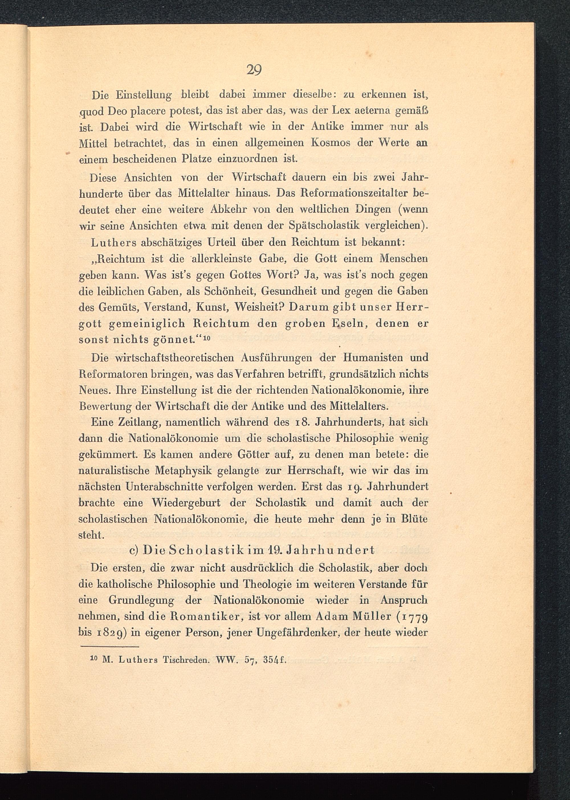 c)DieScholastikim 19 . JahrhundertDie ersten, die zwar nicht ausdrücklich die Scholastik, aber dochdie katholische Philosophie und Theologie im weiteren Verstände füreine Grundlegung der Nationalökonomie wieder in Anspruchnehmen, sind die Romantiker, ist vor allem Adam Müller (1779bis 1829) in eigener Person, jener Ungefährdenker, der heute wieder