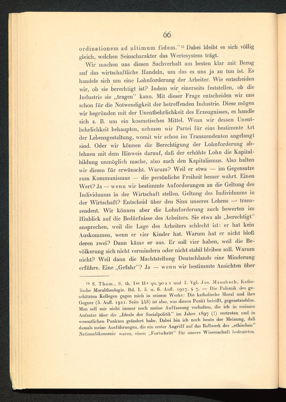 76 S. Thom., S. th. Iae ll a qu. 90 a 2 und o. Vgl. Jos. Mausbach, Katho-lische Moraltheologie. Bd. I. 5 . u. 6. Aull . 1927. S 7. — Die Polemik des ge-schätzten Kollegen gegen mich in seinem Werke: Die katholische Moral und ihreGegner ( 5 . Aufl. 1921. Seite 448 ) ist also, was diesen Punkt betrifft, gegenstandslos.Man soll mir nicht immer noch meine Auffassung Vorhalten, die ich in meinemAufsatze über die „Ideale der Sozialpolitik“ im Jahre 1897 (!) vertreten und inwesentlichen Punkten geändert habe. Dabei bin ich noch heute der Meinung, daßdamals meine Ausführungen, die ein erster Angriff auf das Bollwerk der „ethischenNationalökonomie waren, einen „Fortschritt“ für unsere Wissenschaft bedeuteten.