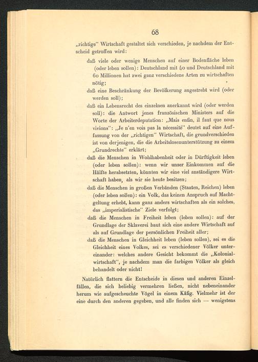 daß die Menschen in Gleichheit leben (leben sollen), sei es dieGleichheit eines Volkes, sei es verschiedener Völker unter-einander: welches andere Gesicht bekommt die „Kolonial-wirtschaft“, je nachdem man die farbigen Völker als gleichbehandelt oder nicht!