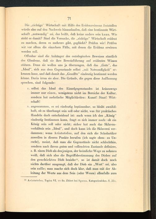 Die „richtige“ Wirtschaft mit Hilfe des Evidenzwissens feslstellenwäirde also auf den Nachweis hinauslaufen, daß eine bestimmte Wirt-schaft „notwendig“ sei, das heißt, daß keine andere sein kann. Wiesteht es damit? Sind die Versuche, die „richtige“ Wirtschaft evidentzu machen, deren es mehrere gibt, geglückt? Prüfen wir! Prüfenwir, vor allem die einzelnen Fälle, mit denen die Evidenz erwiesenwerden soll.