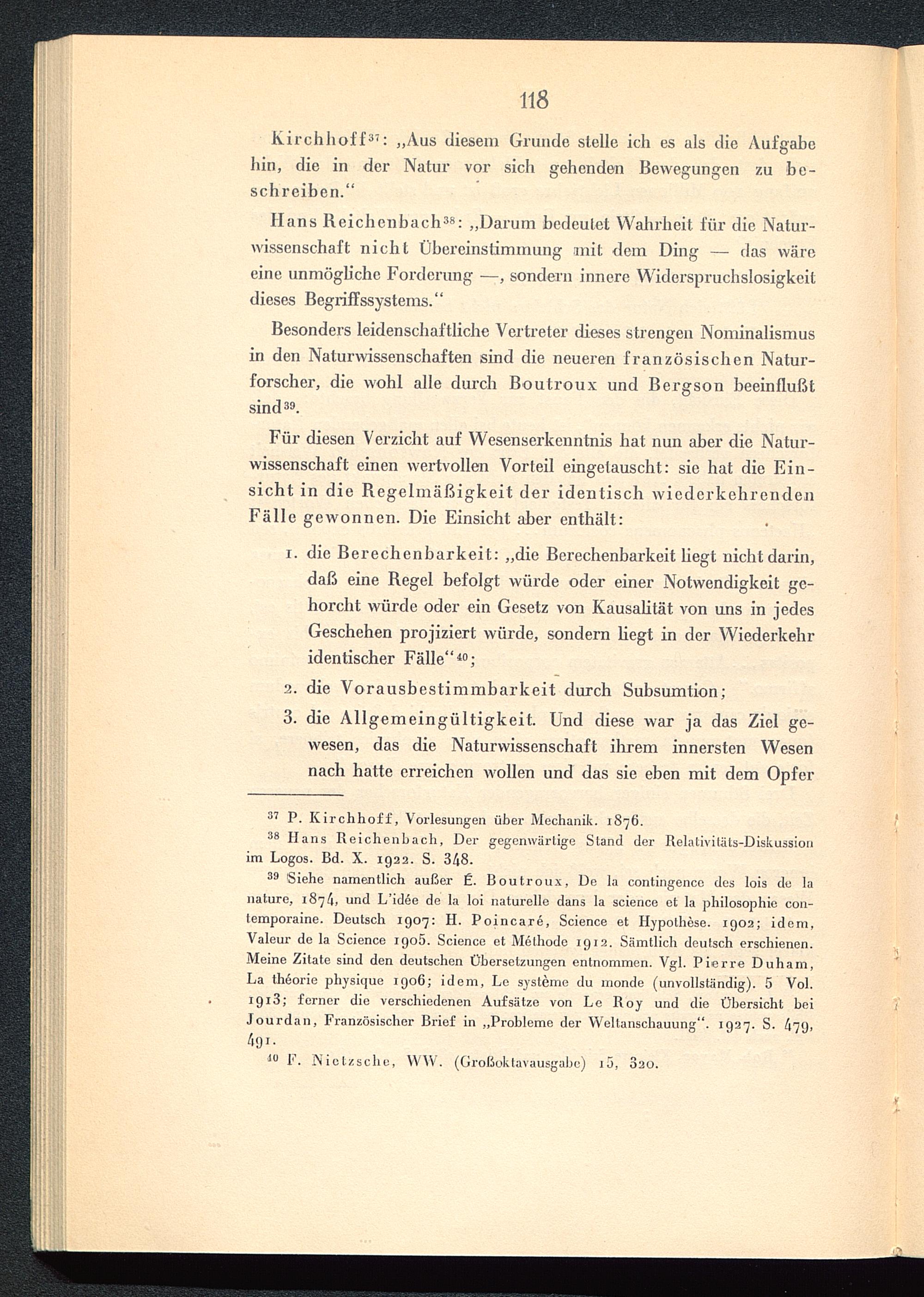 Besonders leidenschaftliche Vertreter dieses strengen Nominalismusin den Naturwissenschaften sind die neueren französischen Natur-forscher, die wohl alle durch Boutroux und Bergson beeinflußtsind 39 .