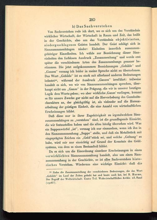 Von Sachverstehen rede ich dort, wo es sich um das Verständniswirklicher Wirtschaft, der Wirtschaft in Raum und Zeit, das heißtin der Geschichte, also um das Verständnis objektivierten,niedergeschlagenen Geistes handelt. Der Geist schlägt sich inSinnzusammenhängen nieder: Einheiten innerlich zusammen-