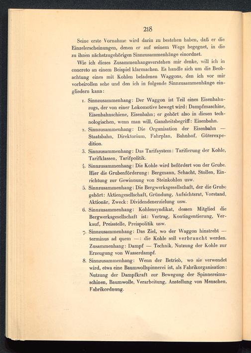 Seine erste Vornahme wird darin zu bestehen haben, daß er dieEinzelerscheinungen, denen er auf seinem Wege begegnet, in diezu ihnen nächstzugehörigen Sinnzusammenhänge einordnet.