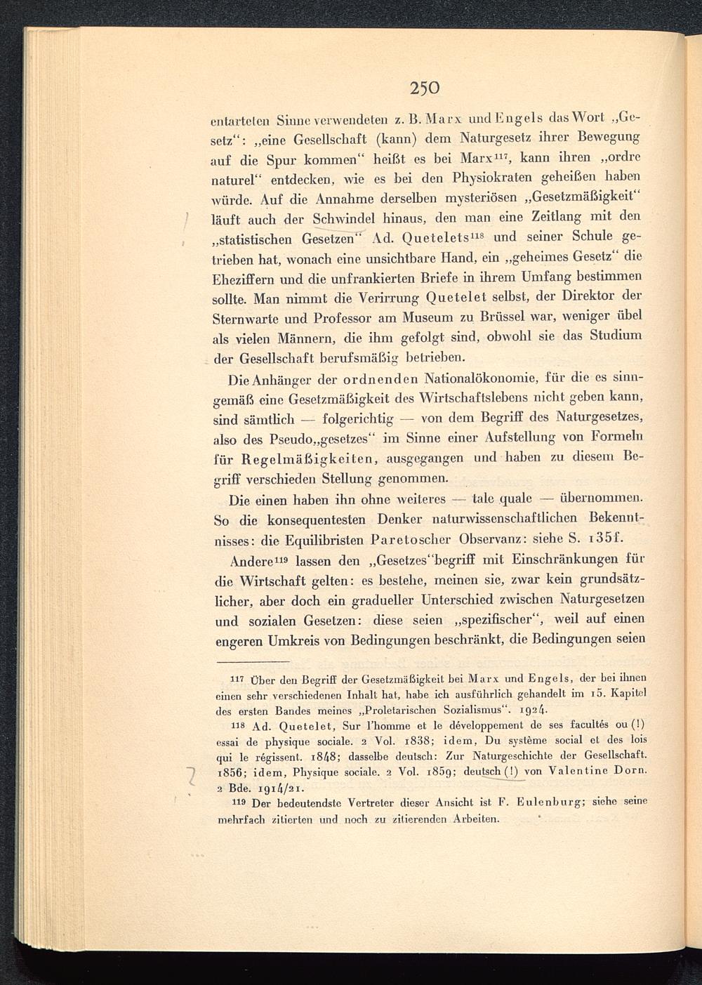 117 Über den Begriff der Gesetzmäßigkeit bei Marx und Engels, der bei ihneneinen sehr verschiedenen Inhalt hat, habe ich ausführlich gehandelt im i5. Kapiteldes ersten Bandes meines „Proletarischen Sozialismus“. 192 / 1 .
