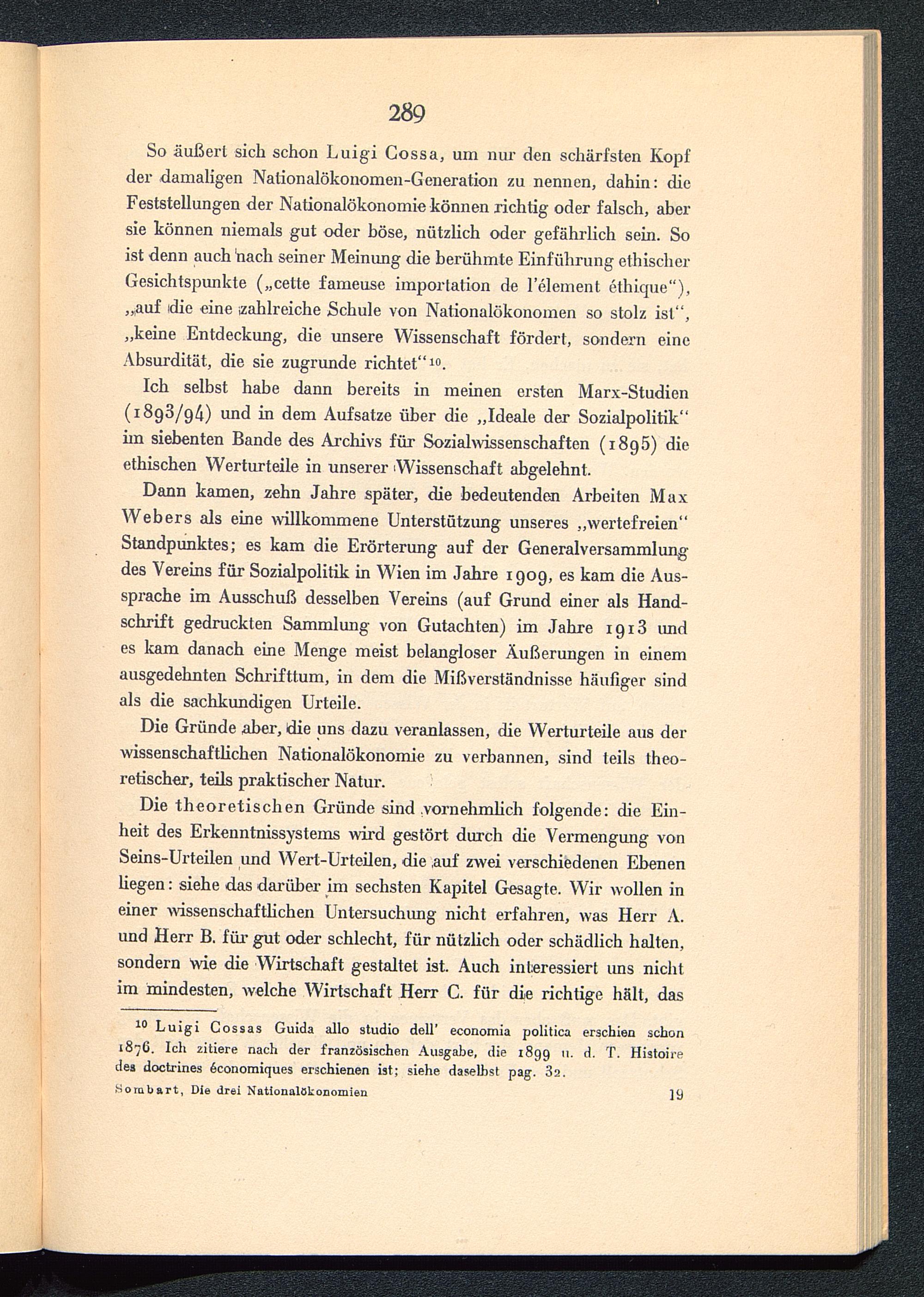 10 Luigi Cossas Guida allo Studio dell' economia politica erschien schon1876. Ich zitiere nach der französischen Ausgabe, die 1899 11. d. T. Histoiredes doctrines öconomiques erschienen ist; siehe daselbst pag. 32 .