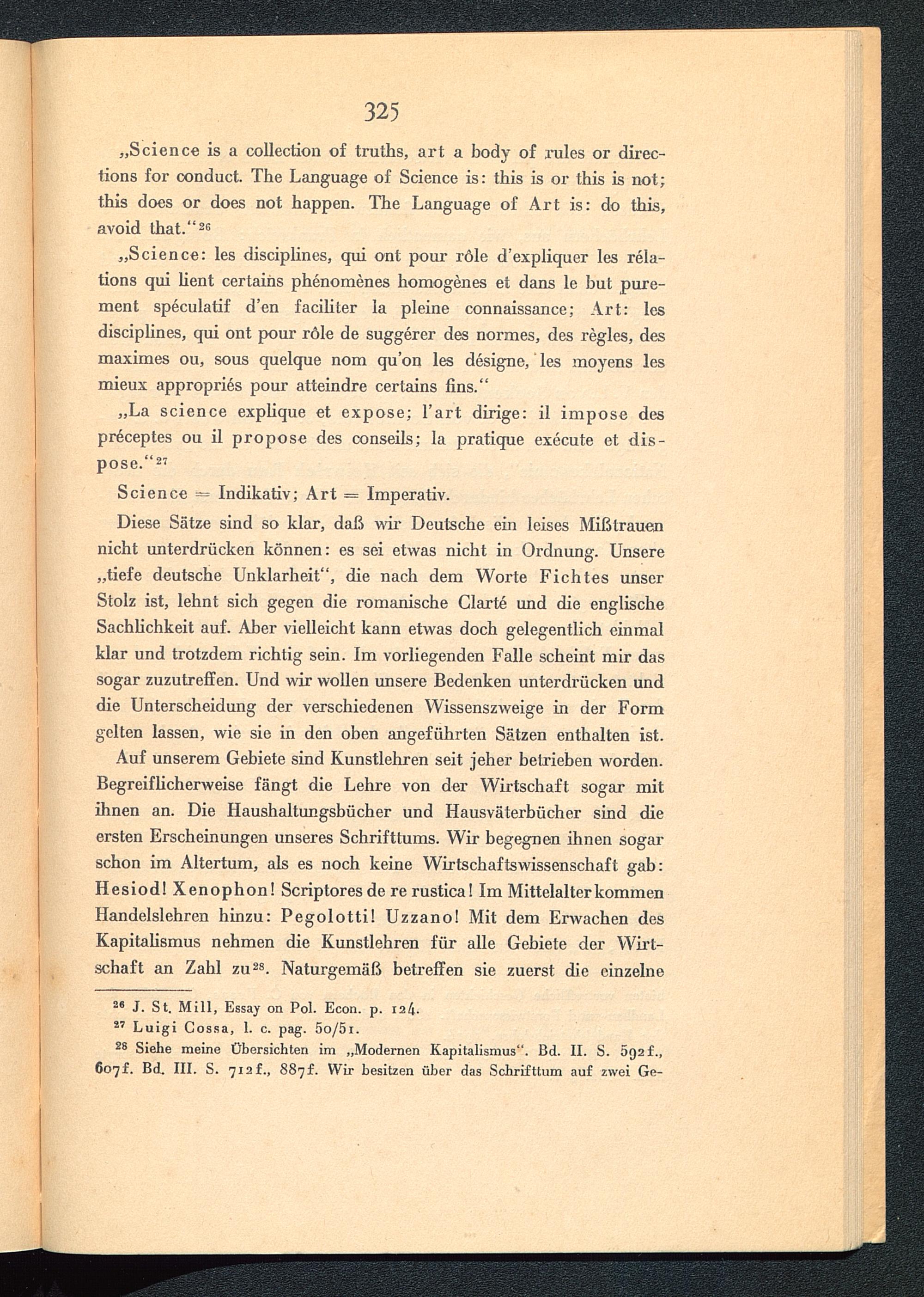 Auf unserem Gebiete sind Kunstlehren seit jeher betrieben worden.Begreiflicherweise fängt die Lehre von der Wirtschaft sogar mitihnen an. Die Haushaltungsbücher und Hausväterbücher sind dieersten Erscheinungen unseres Schrifttums. Wir begegnen ihnen sogarschon im Altertum, als es noch keine Wirtschaftswissenschaft gab:Hesiod! Xenophon ! Scriptores de re rustica! Im Mittelalter kommenHandelslehren hinzu: Pegolotti! Uzzano! Mit dem Erwachen desKapitalismus nehmen die Kunstlehren für alle Gebiete der Wirt-schaft an Zahl zu 28 . Naturgemäß betreffen sie zuerst die einzelne