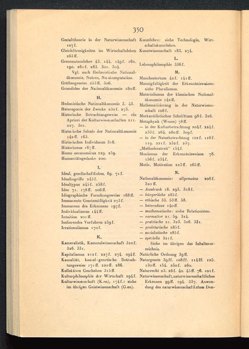 Kapitalismus 2i2f. 227!. 274. 2 g 4 f.Kausalität, kausal-genetische Betrach-tungsweise 171 ff. 220ff. 286.Kollektives Geschehen 3 i 5 ff.Kulturphilosophie der Wirtschaft 2 g 4 f.Kulturwissenschaft (K.en), 17 4 f• ^ sieheim übrigen Geislwissenschaft (G.en).