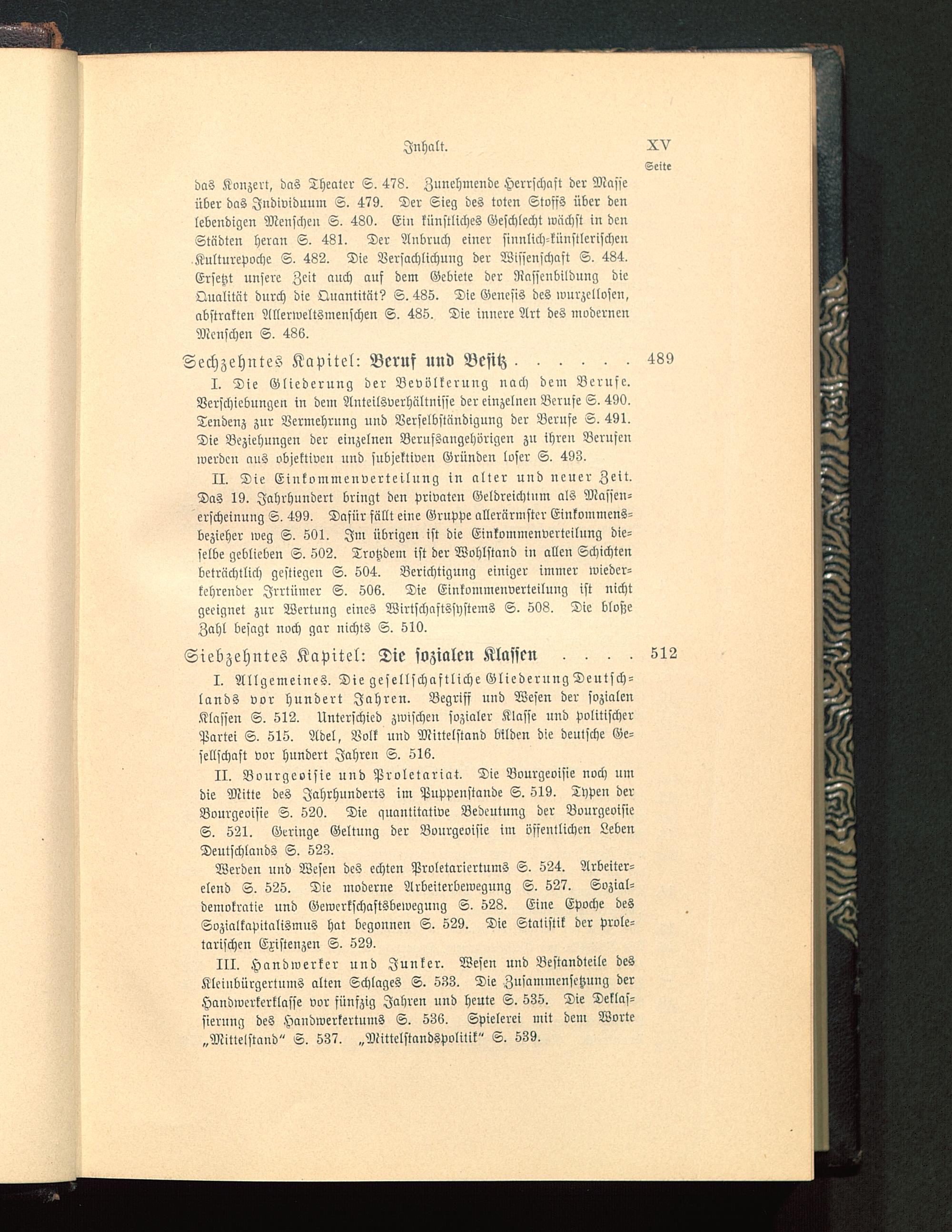 II. Bourgeoisie und Proletariat. Die Bourgeoisie noch umdie Mitte des Jahrhunderts im Puppeustaude S. 519. Typen derBourgeoisie S. 529. Die quantitative Bedeutung der BourgeoisieS. 521. Geringe Geltung der Bourgeoisie im öffentlichen LebenDeutschlands S. 523.