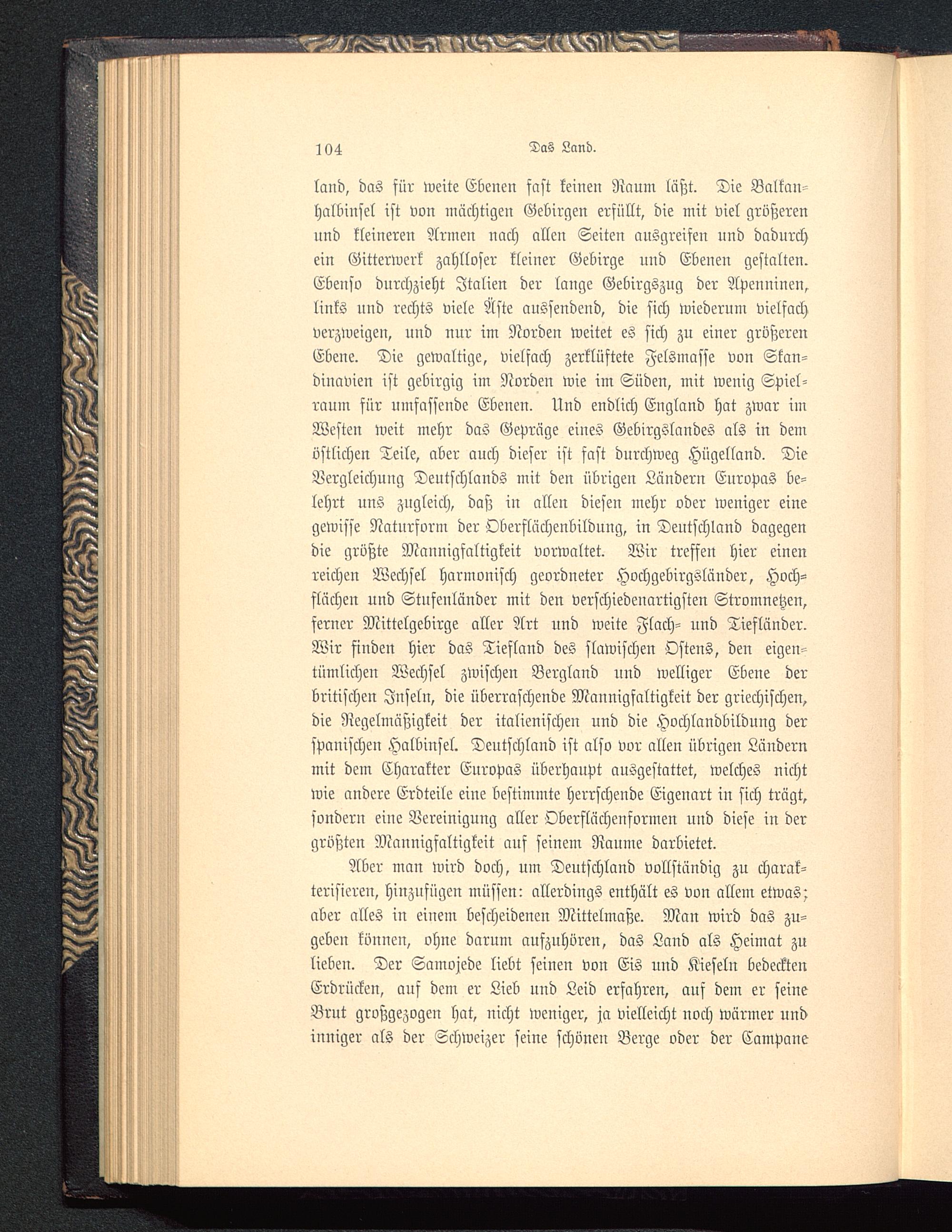 Aber man wird doch, um Deutschland vollständig zu charak-terisieren, hinzufügen müssen: allerdings enthält es von allem etwas:aber alles in einem bescheidenen Mittelmaße. Man wird das zu-geben können, ohne darum aufzuhören, das Land als Heimat zulieben. Der Samojede liebt seinen von Eis und Kieseln bedecktenErdrücken, auf dem er Lieb und Leid erfahren, auf dem er seineBrüt großgezogen hat, nicht weniger, ja vielleicht noch Würmer undinniger als der Schweizer seine schönen Berge oder der Campane