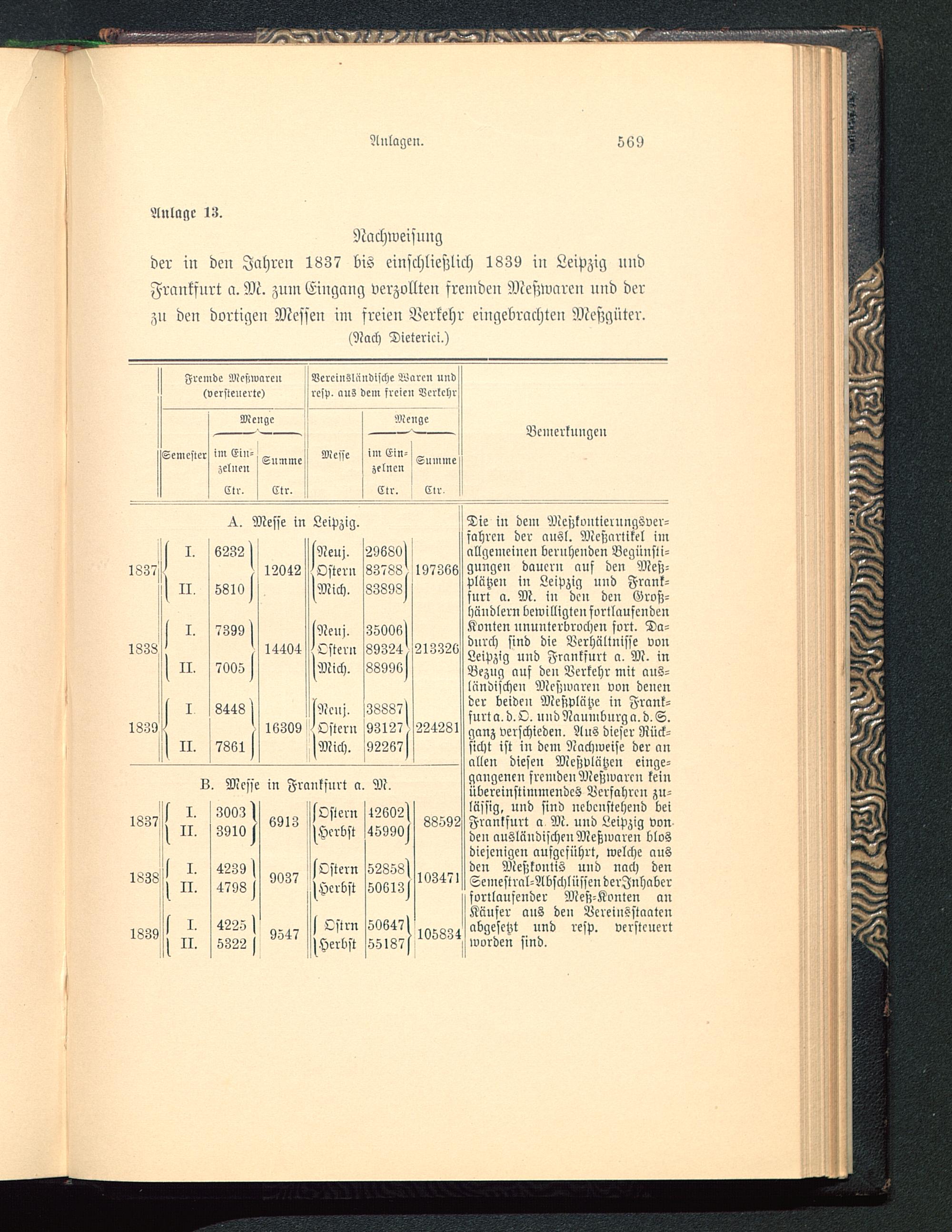 Tie in dein AießkoiitielnngSver-sahren der ausl. Meßartikel imallgemeinen beruhenden Begünsti-gungen dauern auf den Meß-plätzen in Leipzig nnd Frank-furt a. M. iu den den Groß-händlern bewilligten fortlaufendenKonten nnunterbrocheu fort. Da-durch sind die Verhältnisse vonLeipzig und Franksurt a. M. inBezug auf deu Verkehr mit aus-ländischen Meßivaren von denender beiden Meßplätze in Frank-furt a. d.O. undNaumbnrga.d.S.ganz verschieden. Aus dieser Rück-sicht ist in dem Nachweise der anallen diesen Meßvlätzen einge-gangenen fremden Meßivaren keinübereinstimmendes Verfahren zu-lässig, und sind nebenstehend beiFrankfurt a M. uud Leipzig vonden ausländischen Meßivaren blosdiejenigen aufgeführt, welche ausden Meßkontis und nach denSeinestral-AbschlüssenderJnhaberfortlaufender Meß-Konten anKäufer aus den Äereiusstaatcuabgesetzt und resp, versteuertworden sind.