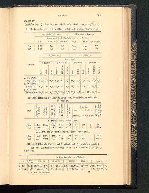 III. Handelsbetriebe Berlins und Breslaus nach Größenklassen geordnet.In der Mauufakturwarenbranche waren im Jahre 1895 beschäftigtPersonen: