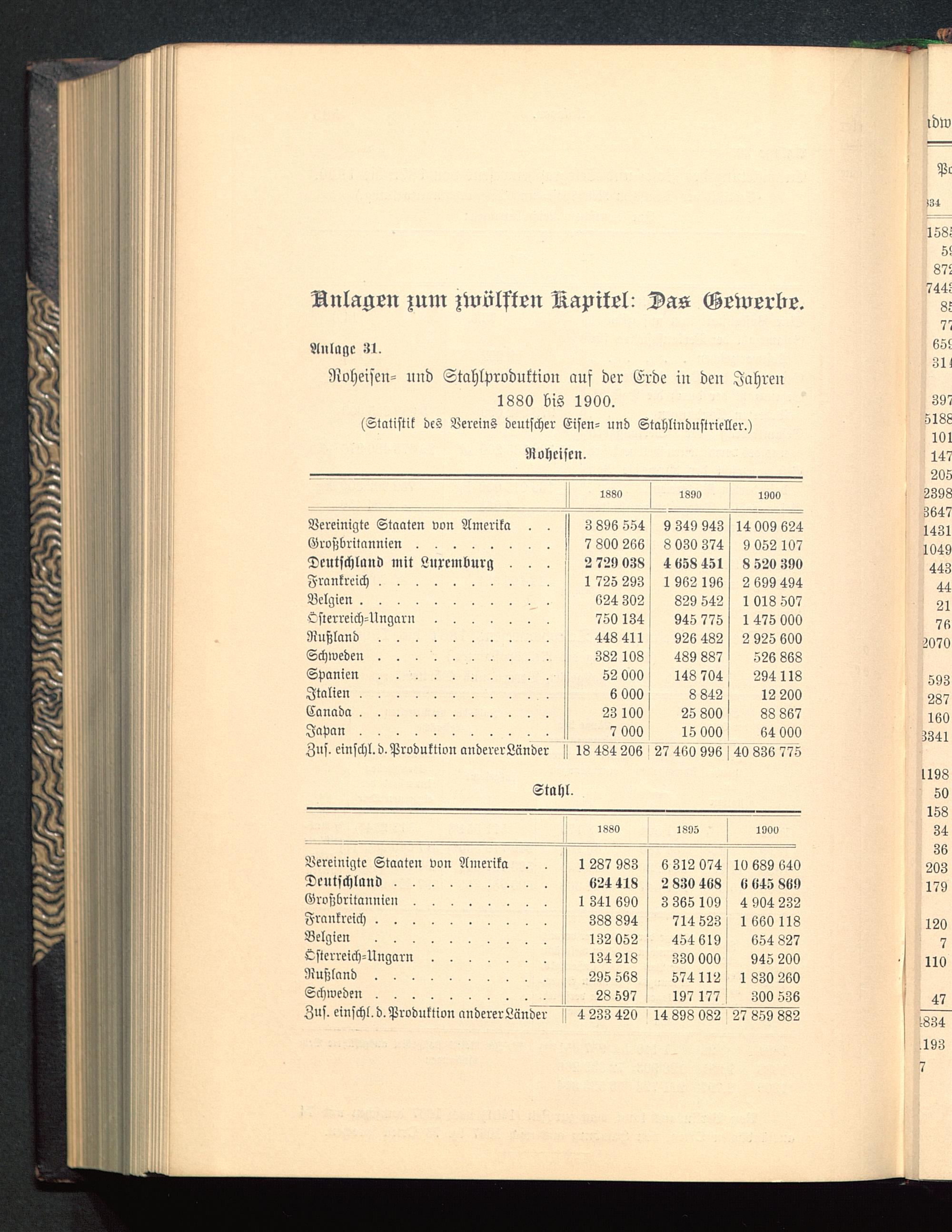 Nvheisen- und Stahlproduktion auf der Erde in den Jahren1880 bis 1900.(Statistik des Vereins deutscher Eisen- und Stahlindustrieller.)