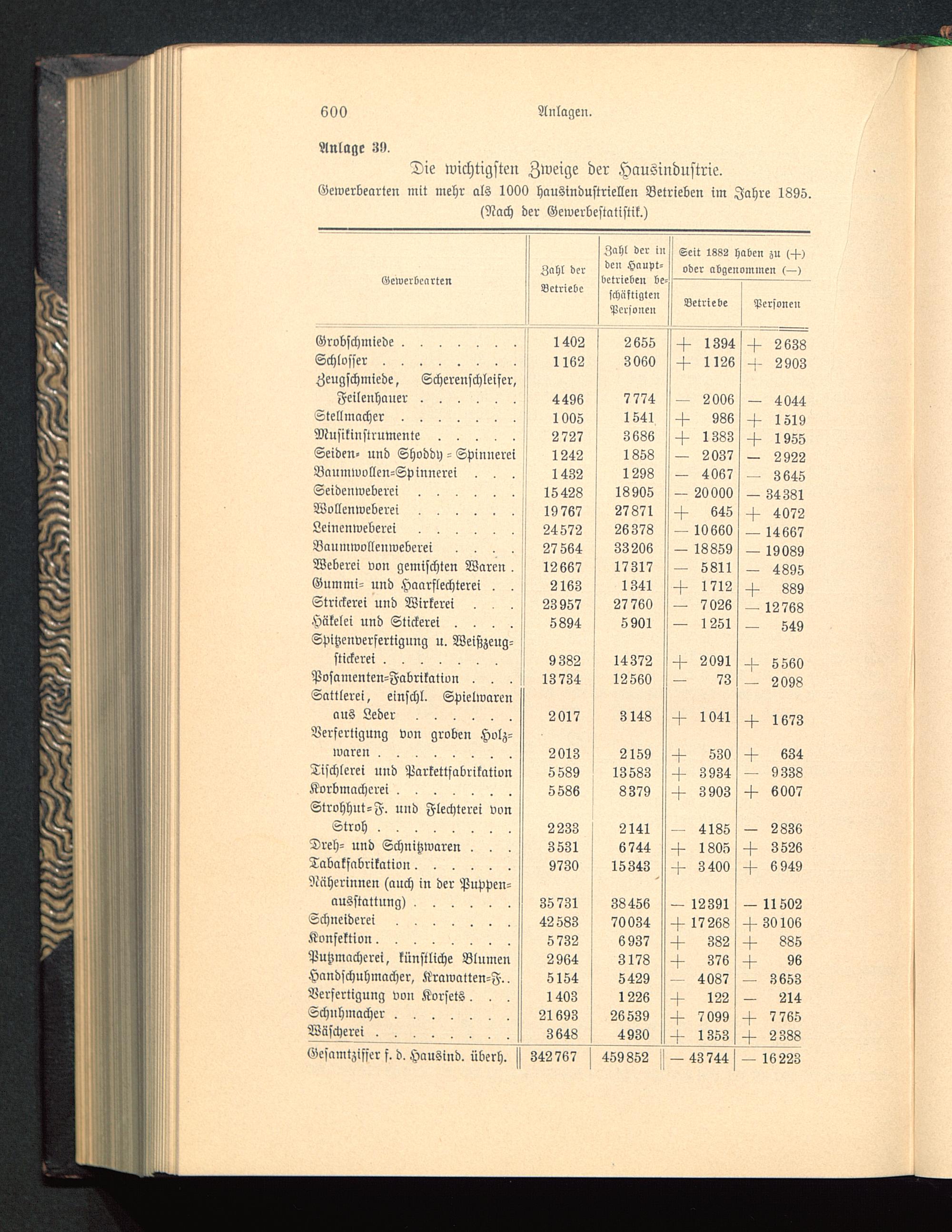 Die wichtigsten Zweige der Hausindustrie.Gewerbearten mit mehr als 1000 hausindustriellen Betrieben im Jahre 1895.(Nach der Gewerbestatistik.)